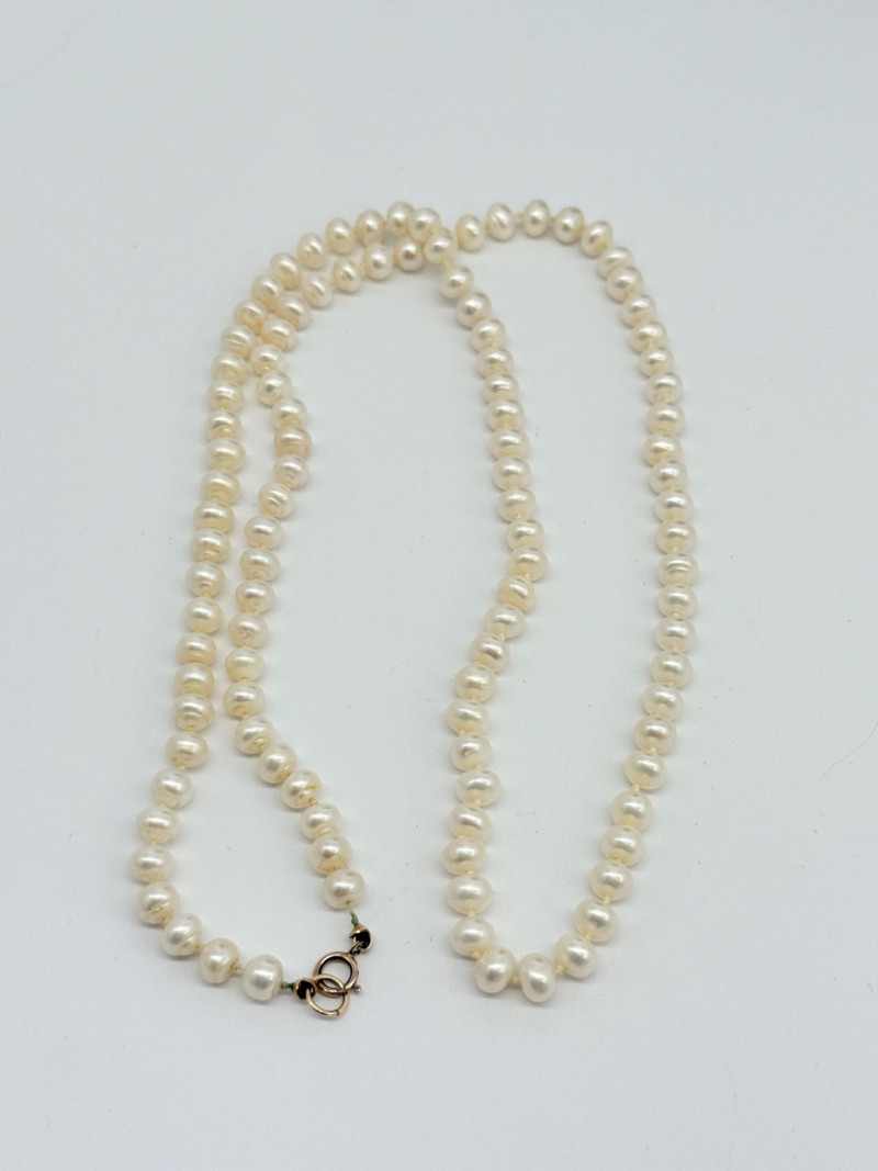 1/20 14K Gold Filled Clasp Pearl Necklace Disclaimer: The jewelry in this auction lot has not been tested. By placing a bid, you agree to purchase the item as is, with no guarantees regarding metal quality, content, or purity. Refunds will not be issued on these factors.