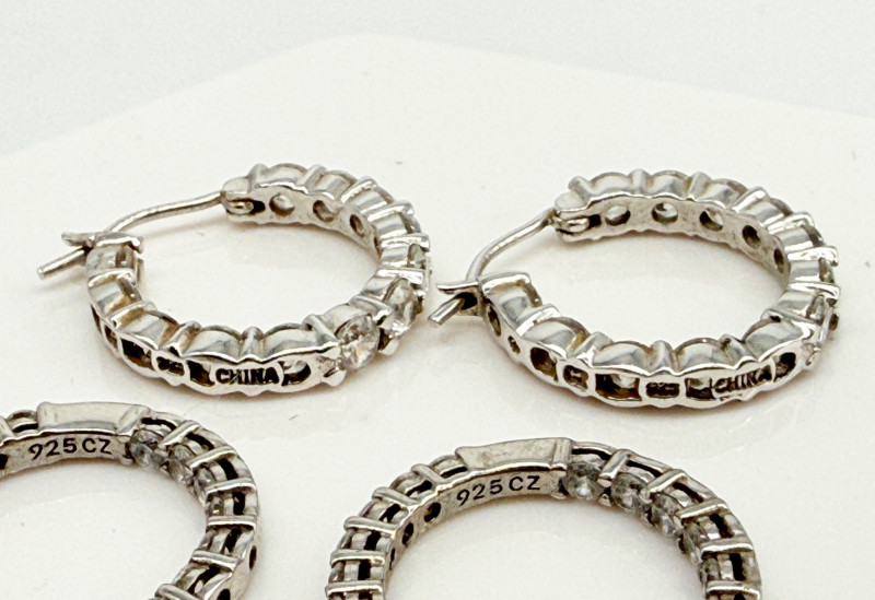 Lot # 102 - CZ Diamond Sterling Rings & Earrings