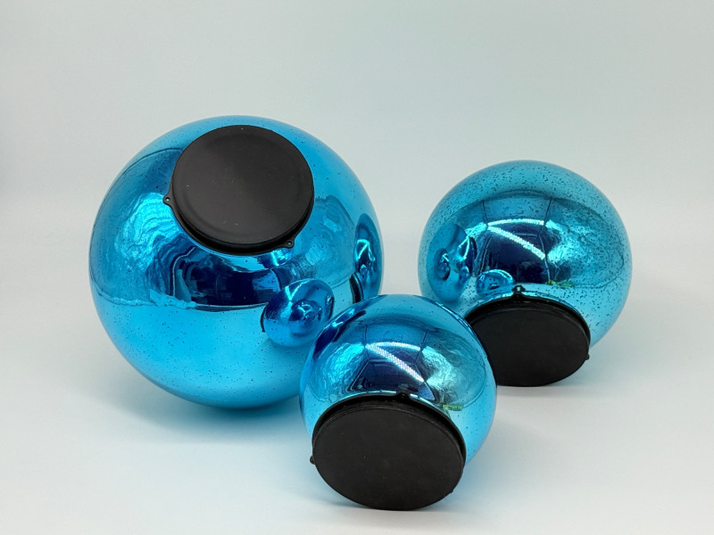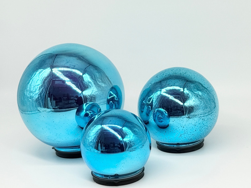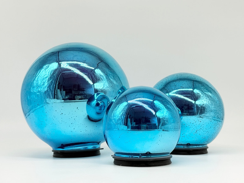 Set of 3 Mercury Glass Spheres by Valerie Appox. Size: