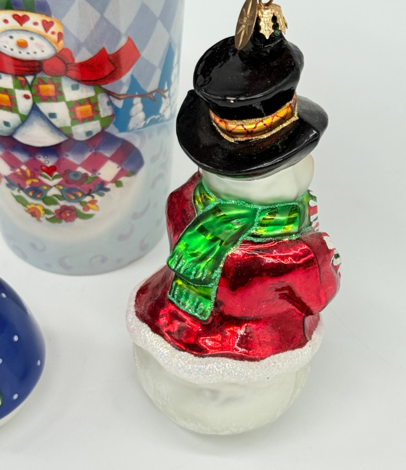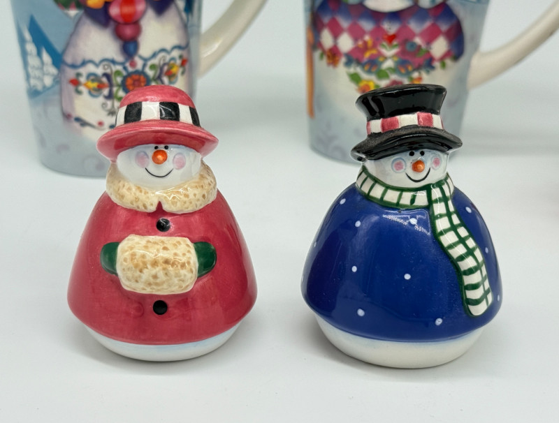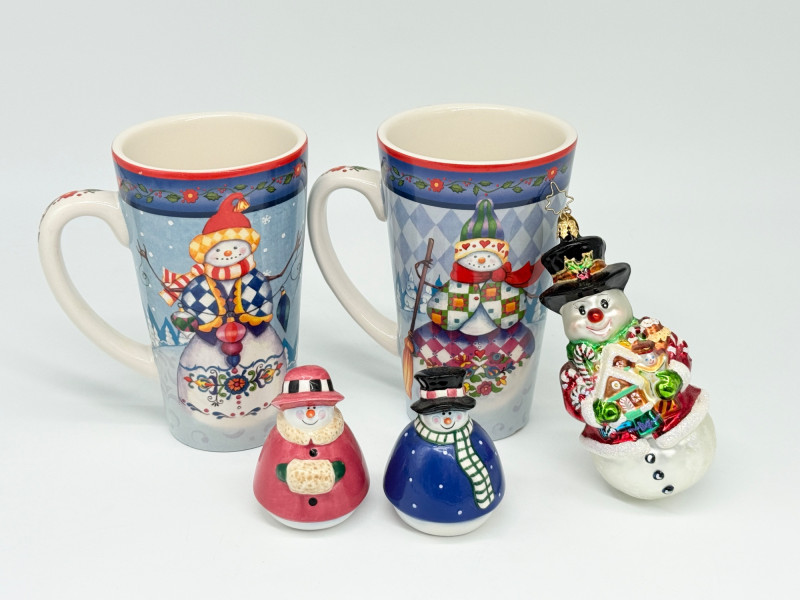 Lot # 139 - Snowman Mugs, Ornament + Salt & Pepper Shakers