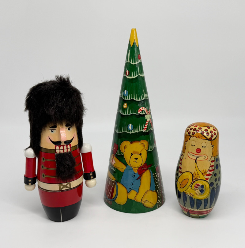Nutcracker, X-Mas Tree & Russian Clown Matryoshka Dolls