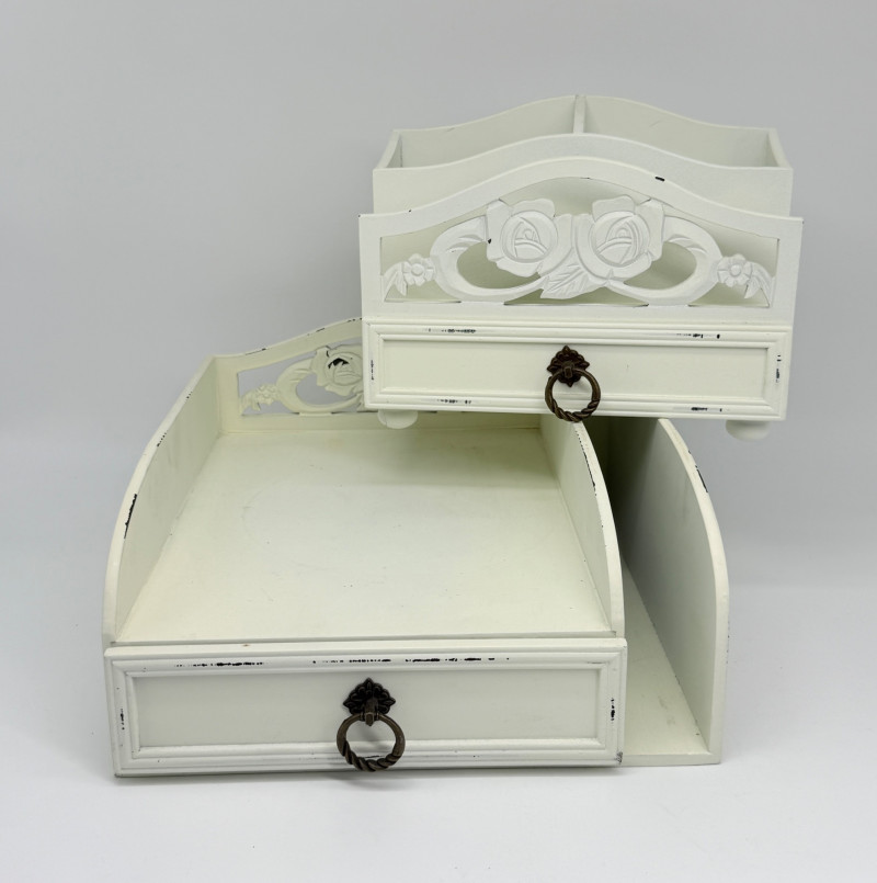 Wooden Destressed Desk Letter Organizers w/ Drawers