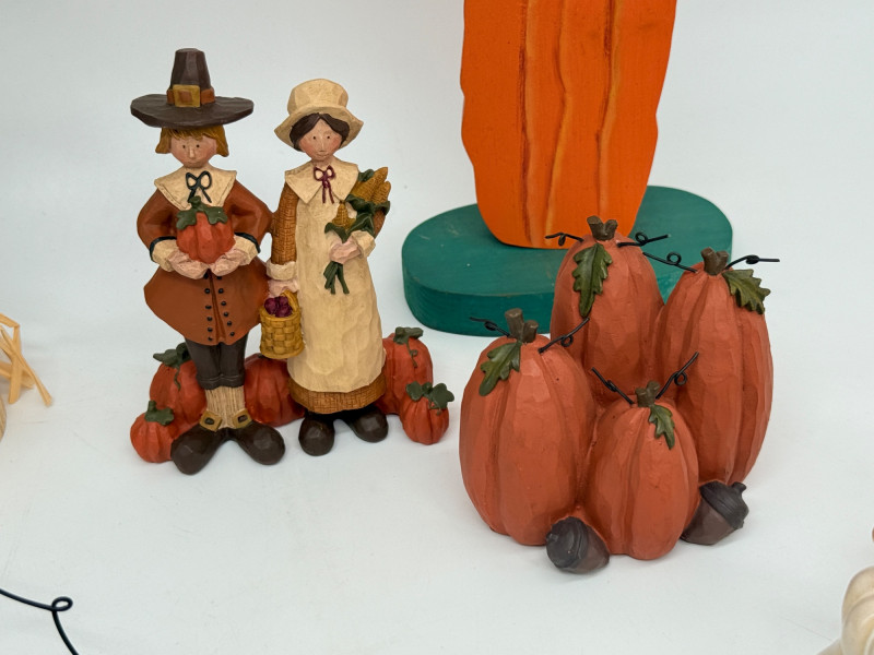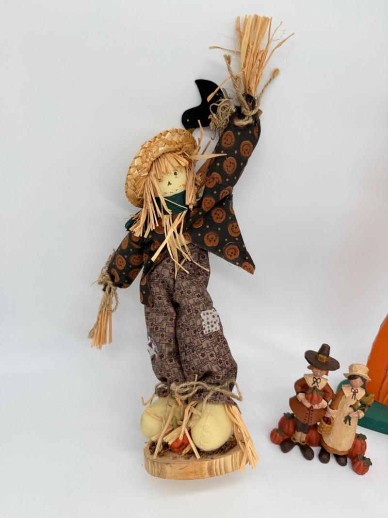 Lot # 187 - Harvest Welcome Sign, Scarecrow, Pilgrim's & Squash Fall Decor