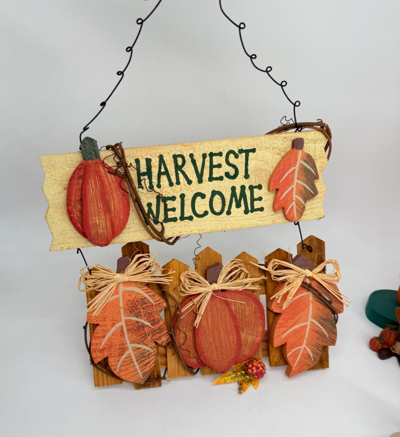 Harvest Welcome Sign, Scarecrow, Pilgrim's & Squash Fall Decor