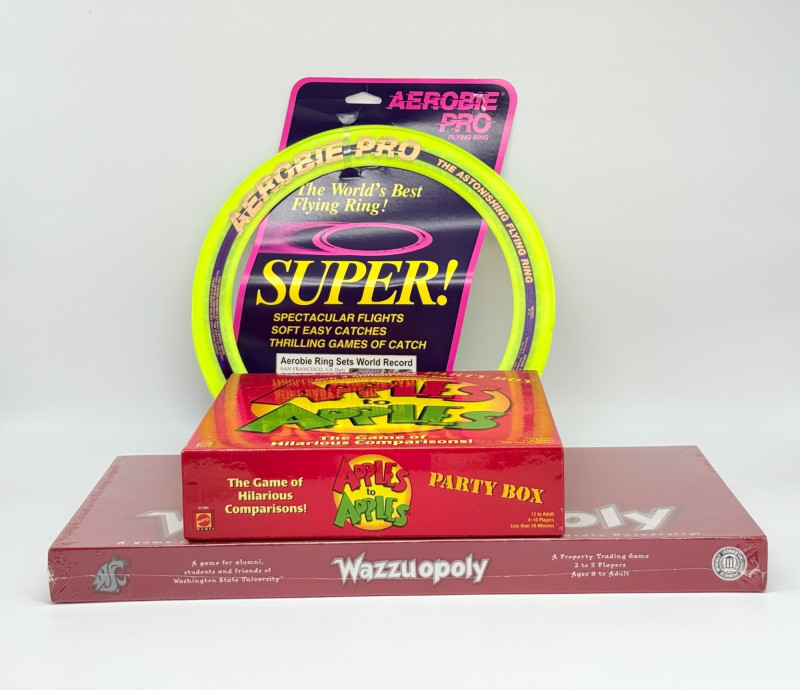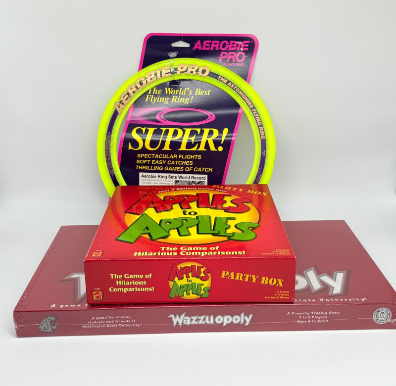 Aerobie Pro Flying Ring, Apples to Apples & Wazzuopoly Games