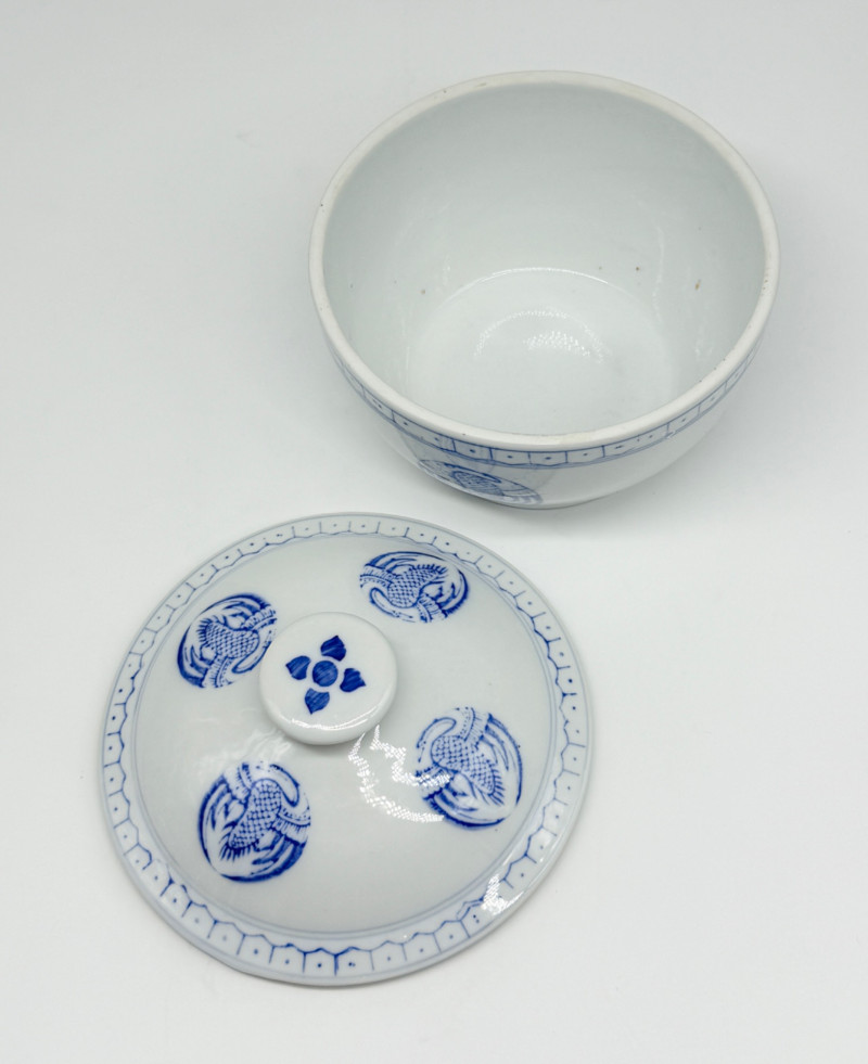 Vintage Chinese Porcelain Covered Rice Crock