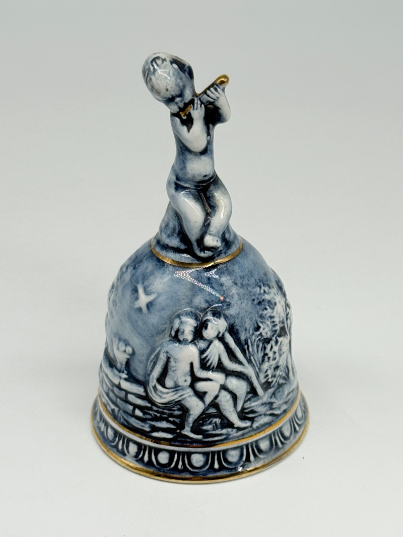 Vintage Capodimonte Porcelain Bell Featuring Cherub Playing Flute