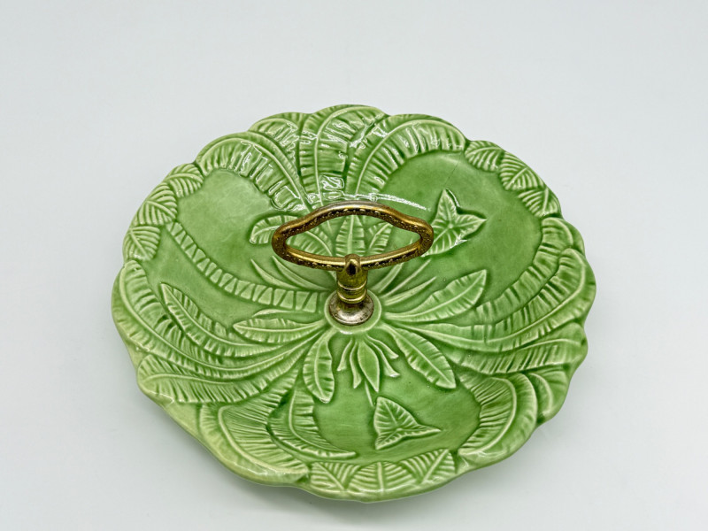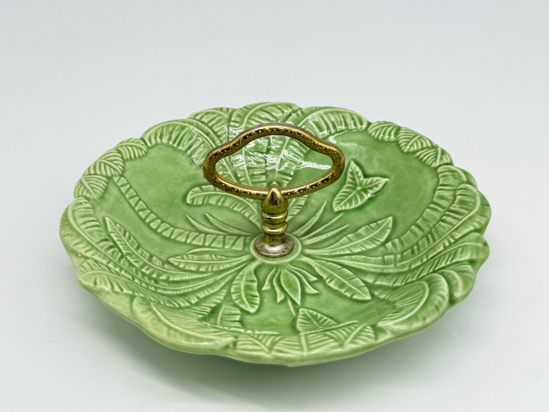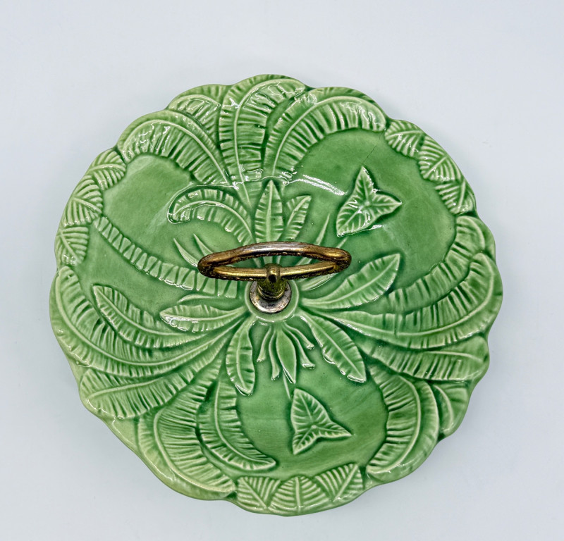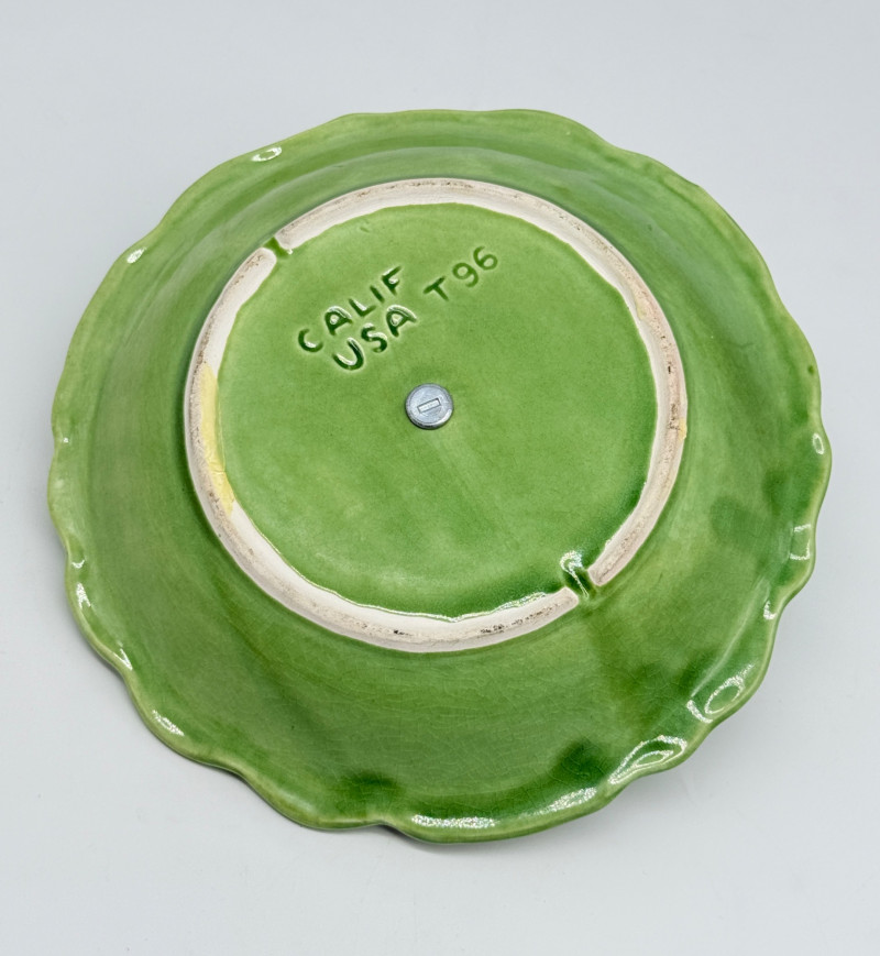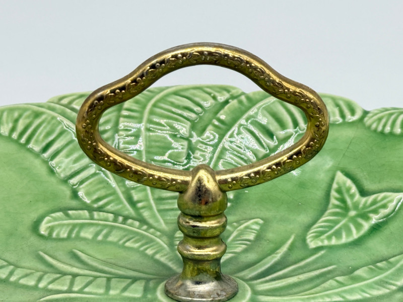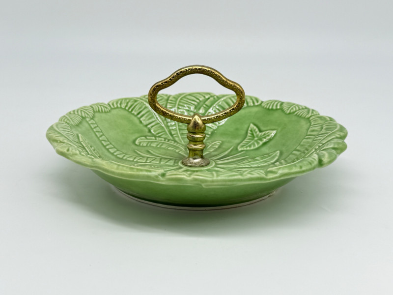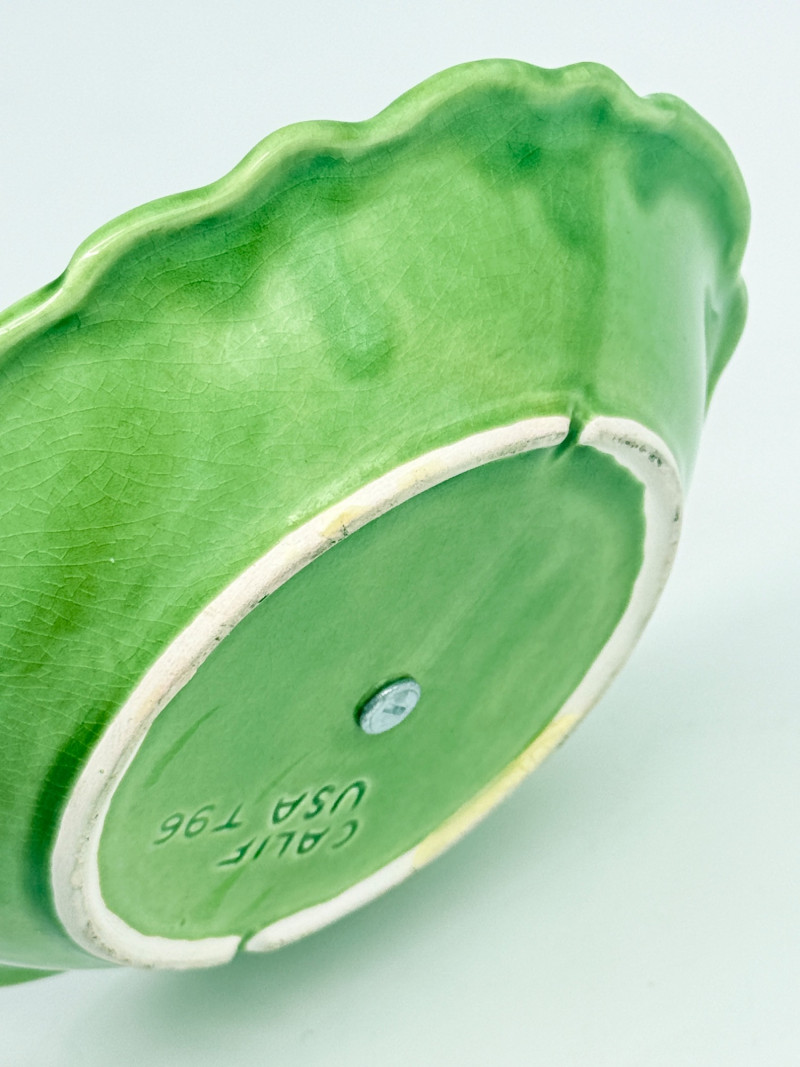 Lot # 33 - Vintage Green California USA Pottery Nut Dish w/ Metal Handle