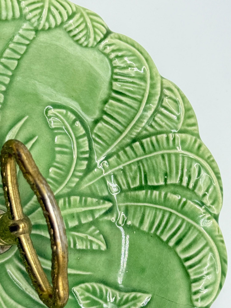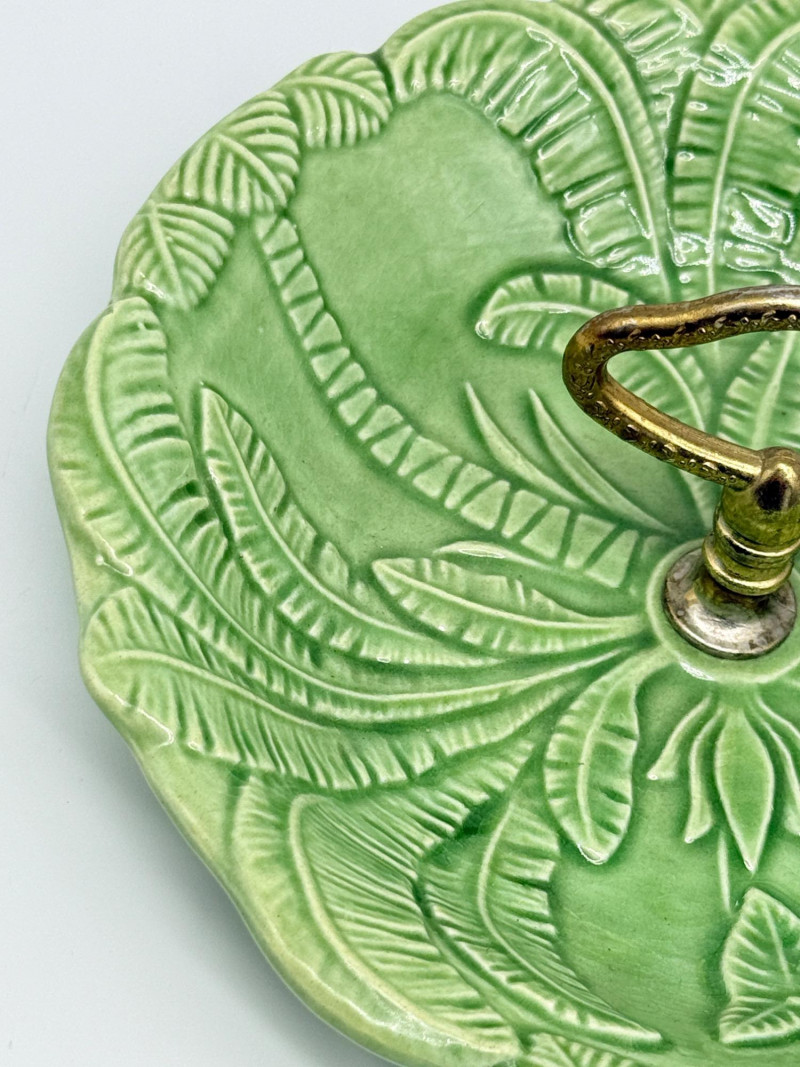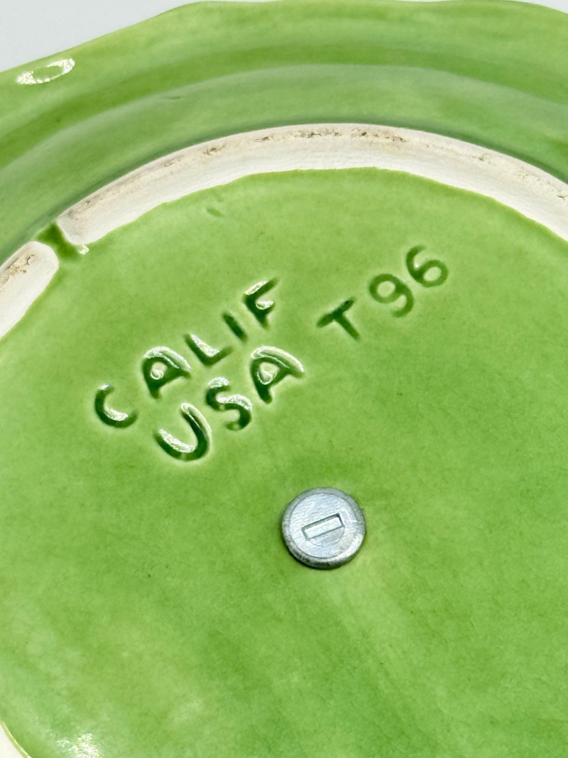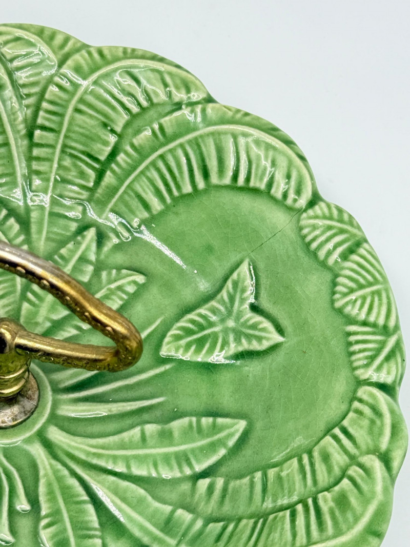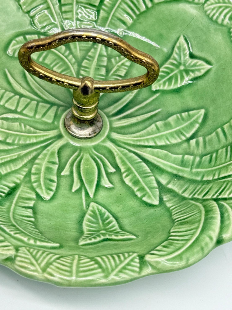 Lot # 33 - Vintage Green California USA Pottery Nut Dish w/ Metal Handle
