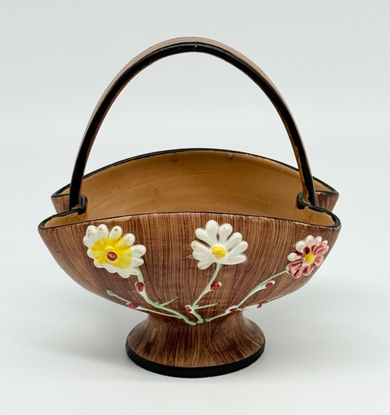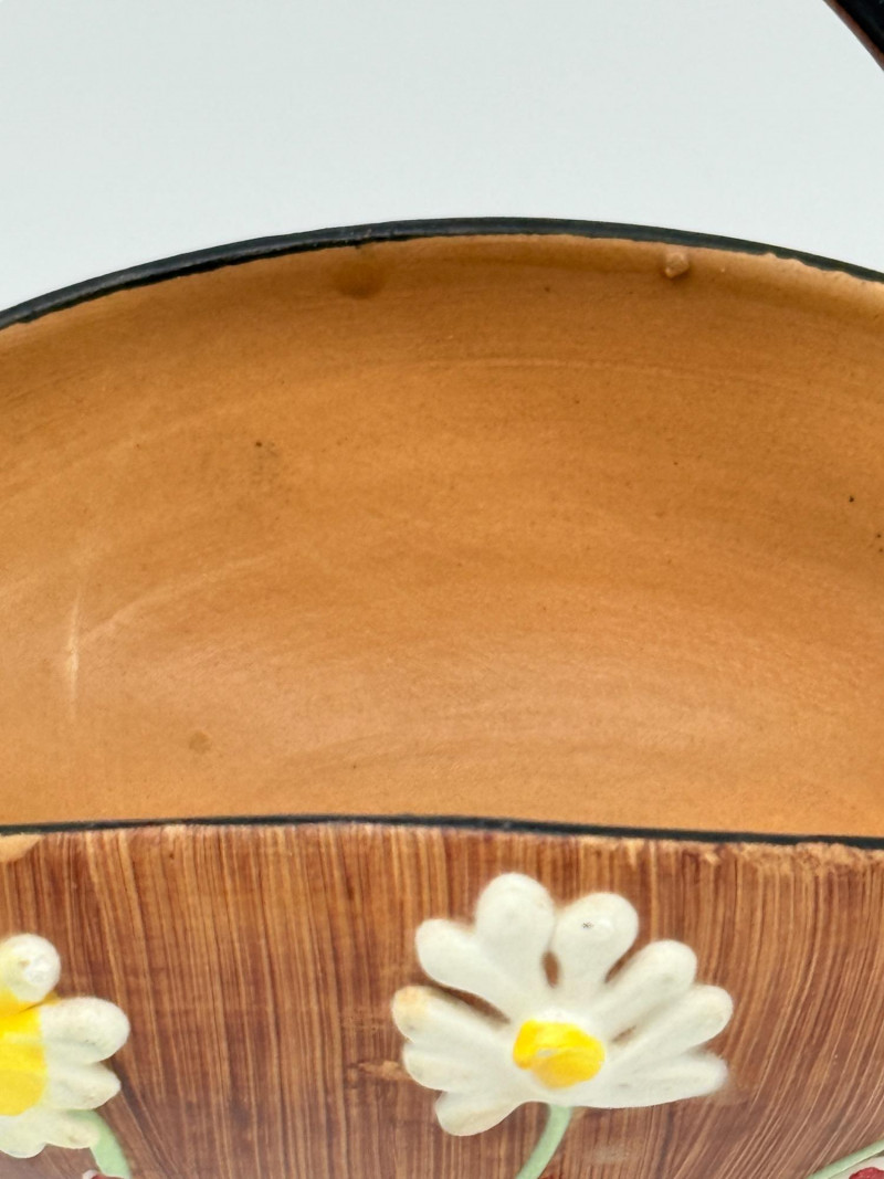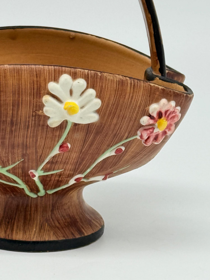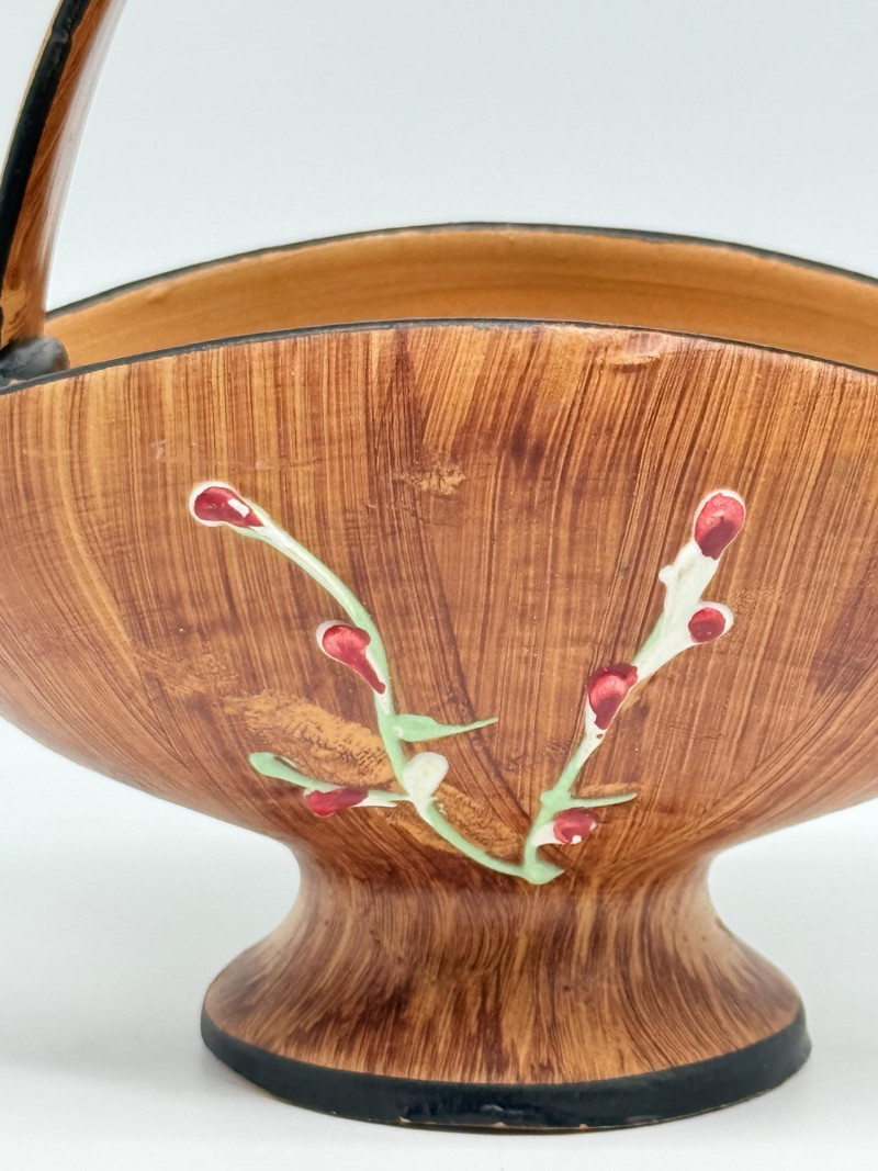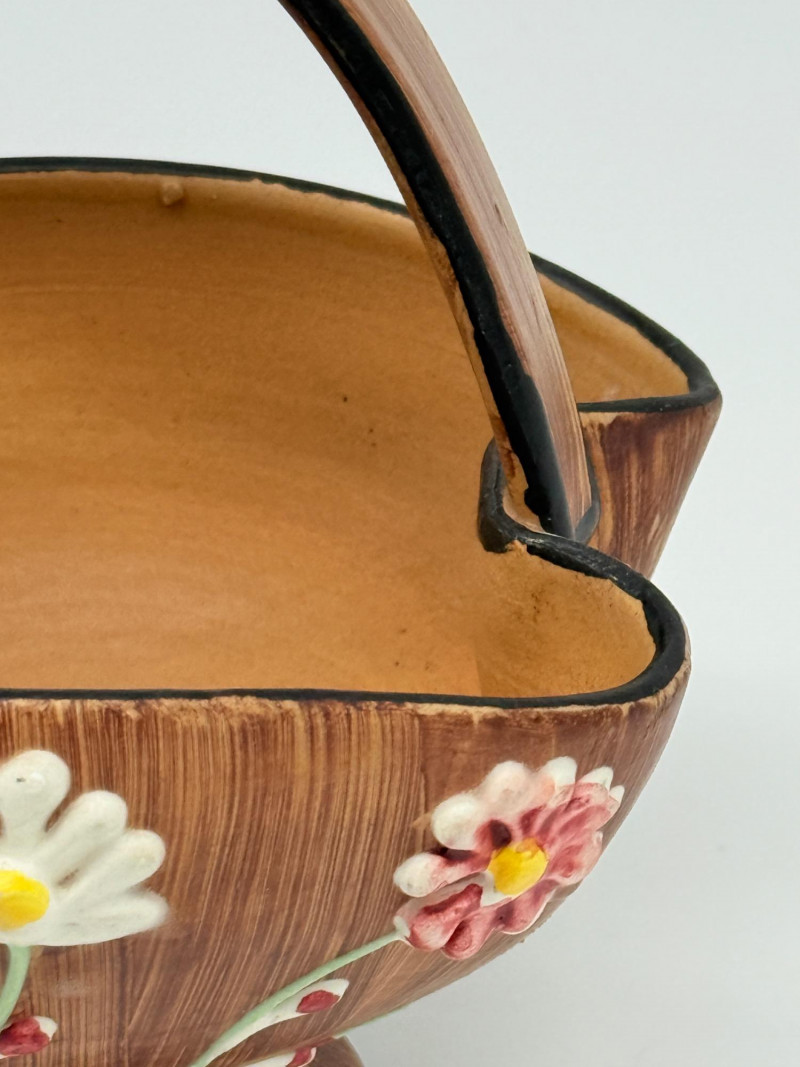 Vintage Italian Hand Painted Pottery Art Trellis Basket