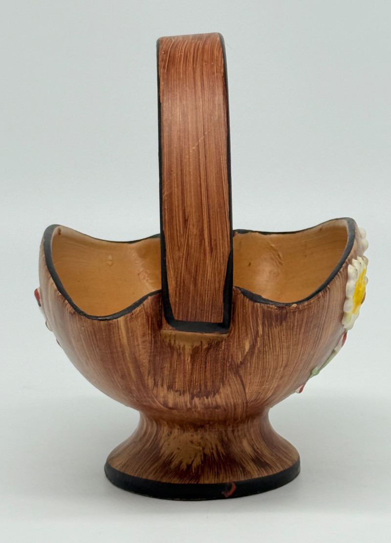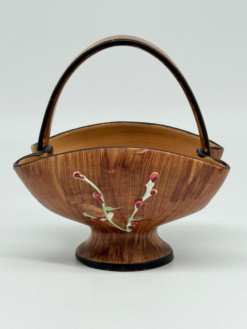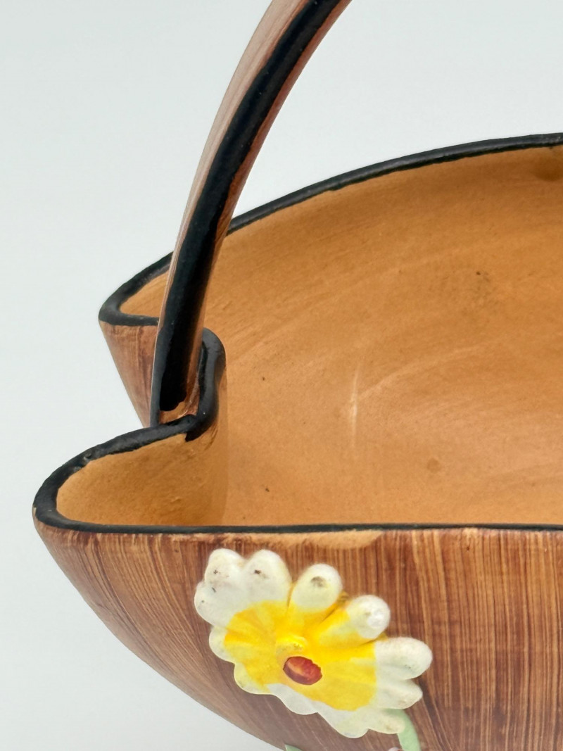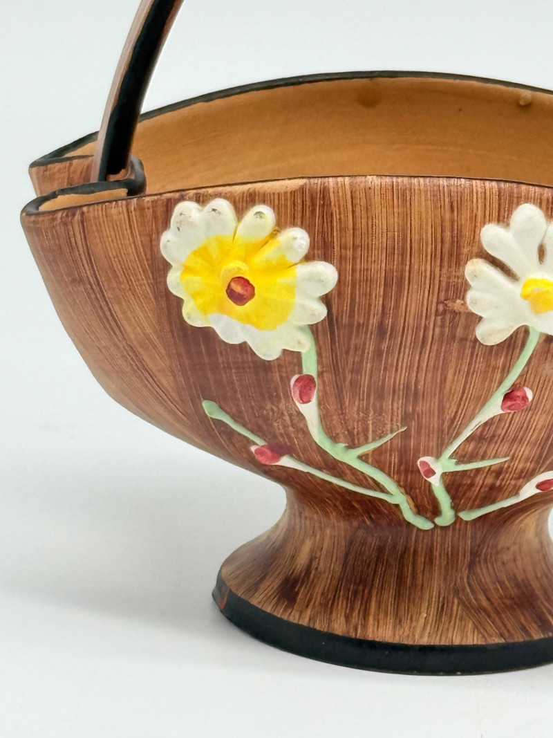 Vintage Italian Hand Painted Pottery Art Trellis Basket