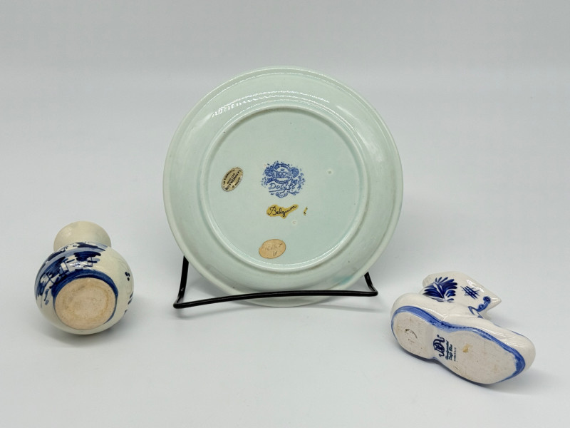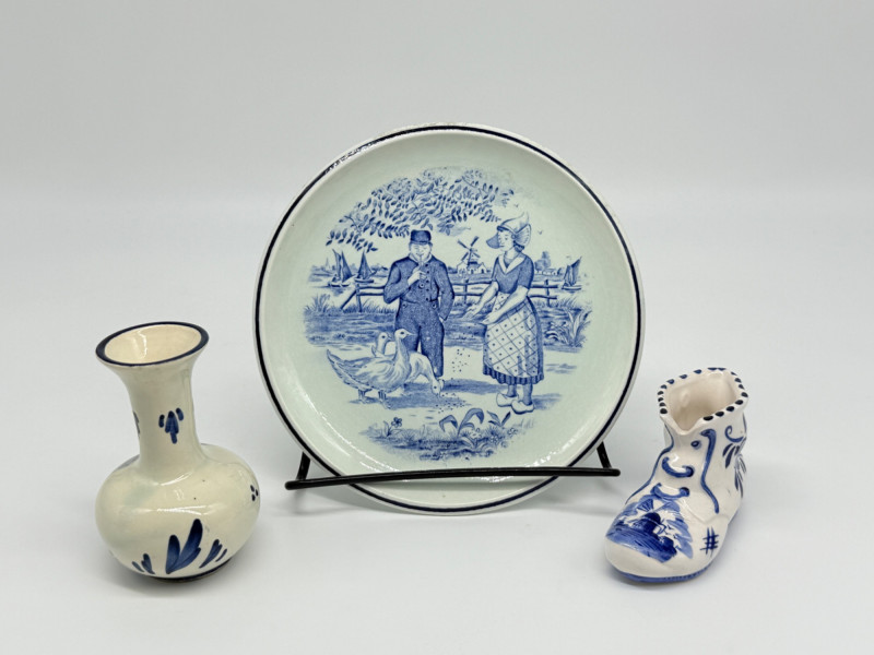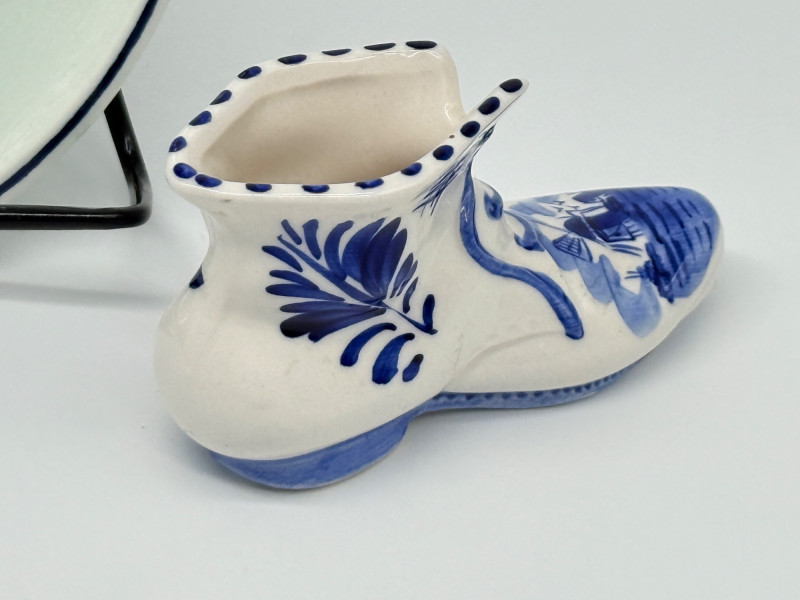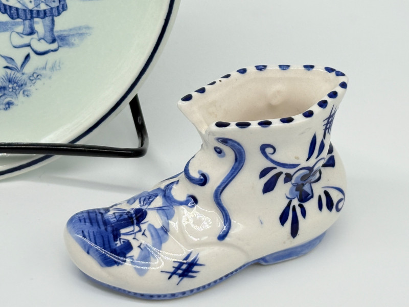 Lot # 43 - Vintage Delft Blue Hand Painted Ceramic Decorative Vase, Plate & Shoe