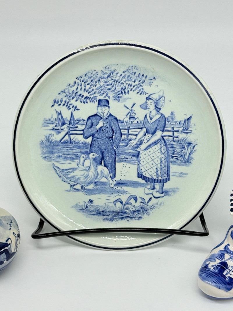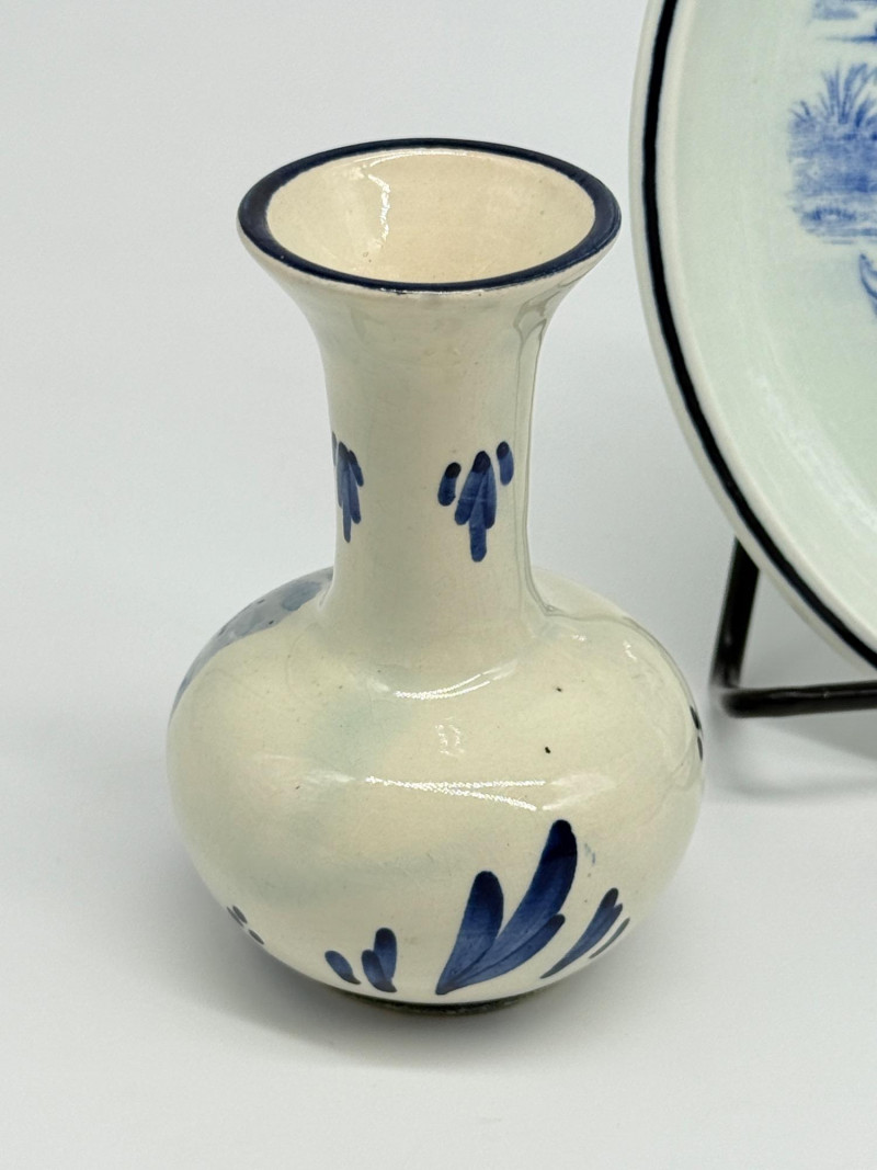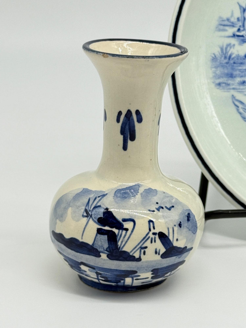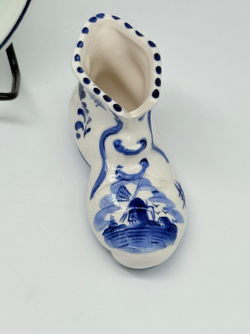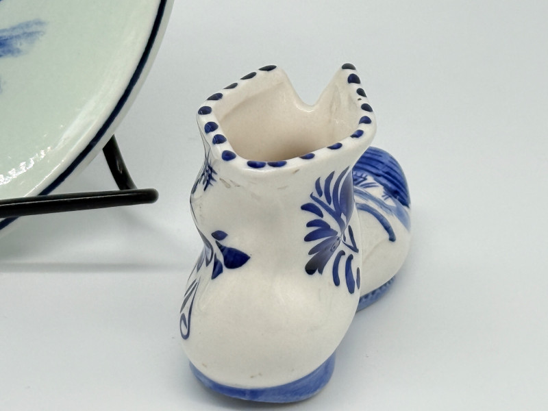 Vintage Delft Blue Hand Painted Ceramic Decorative Vase, Plate & Shoe