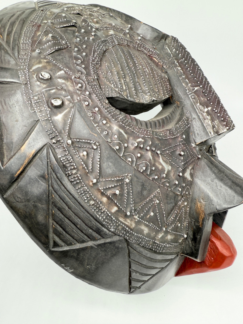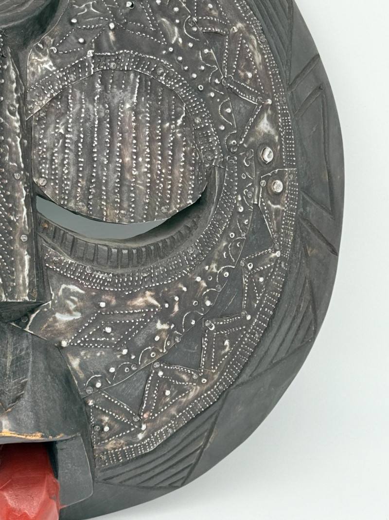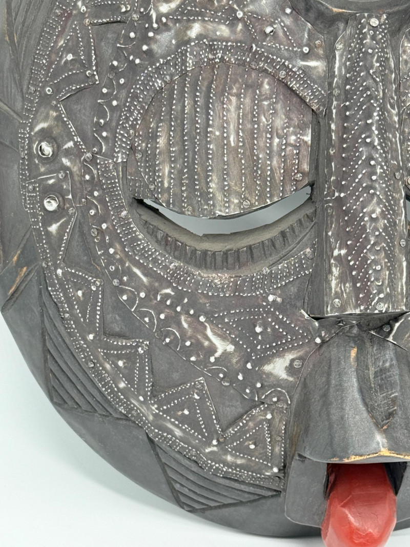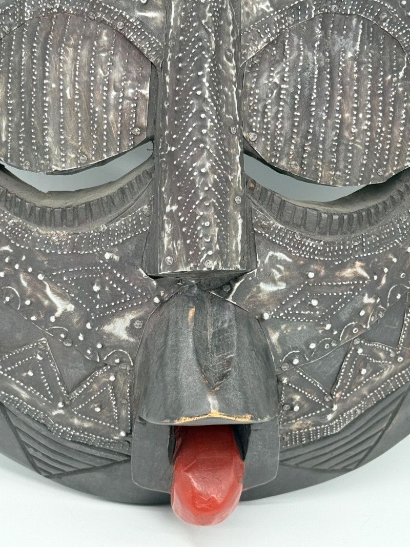 Vintage African Wood Mask: Handcrafted w/ Metal Design