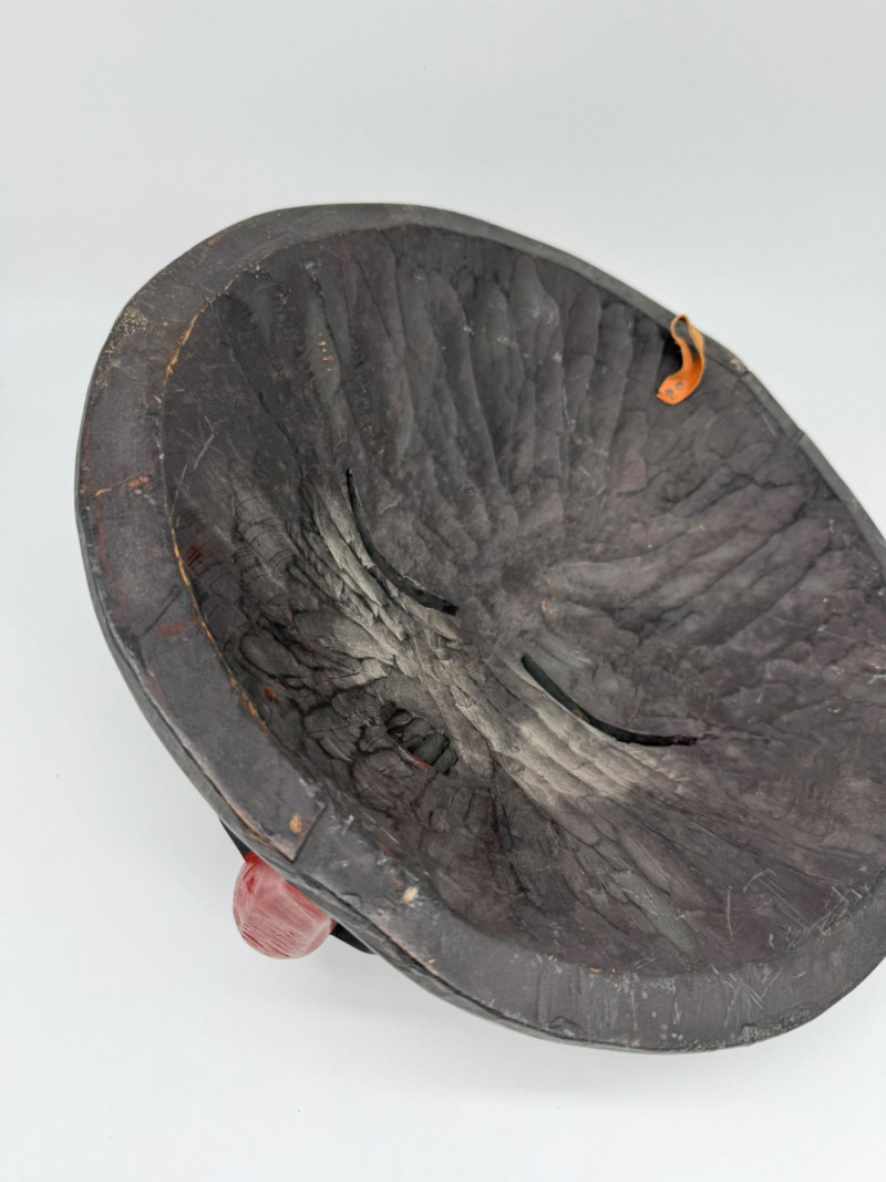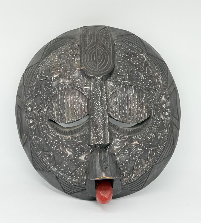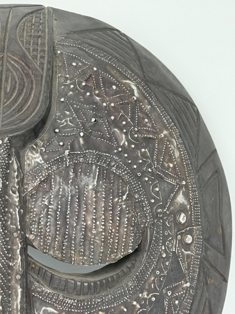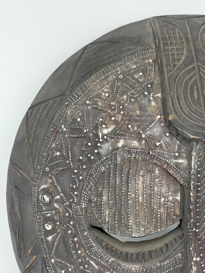 Vintage African Wood Mask: Handcrafted w/ Metal Design