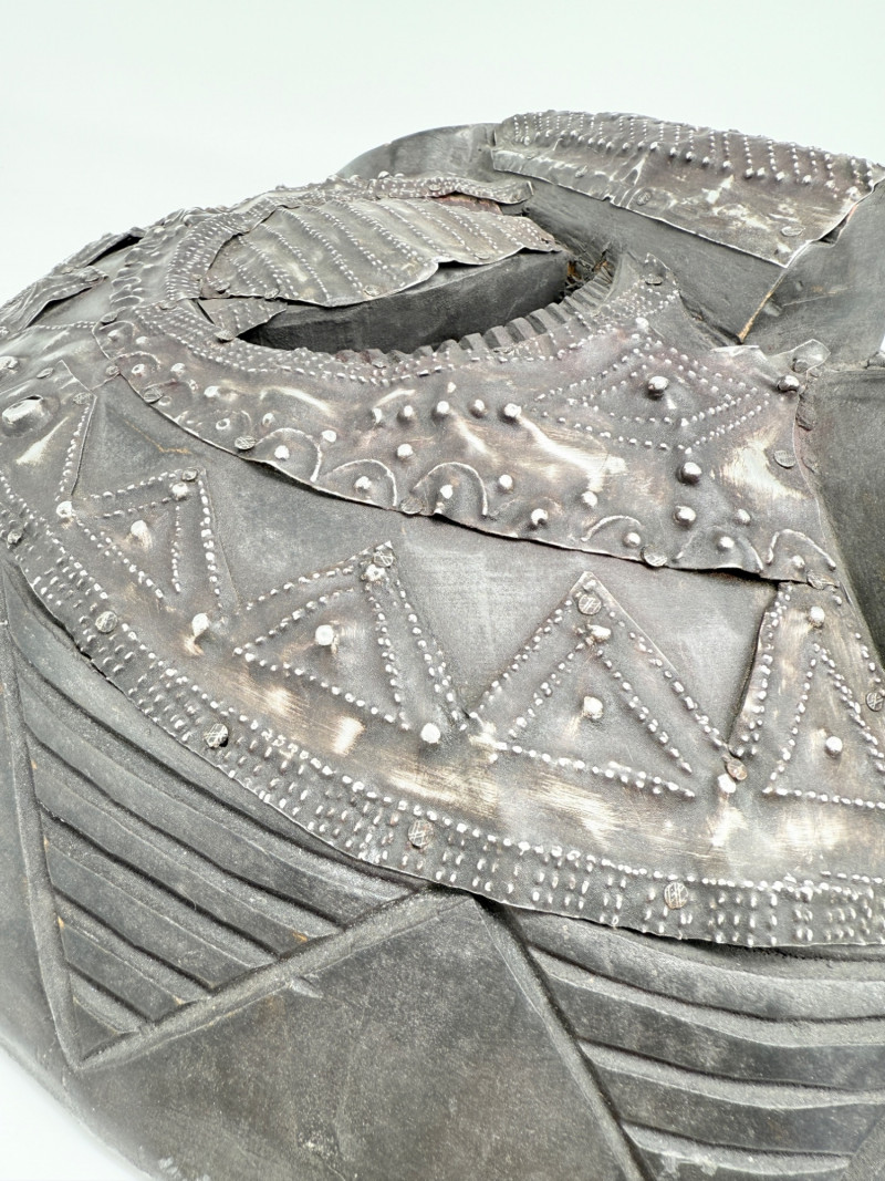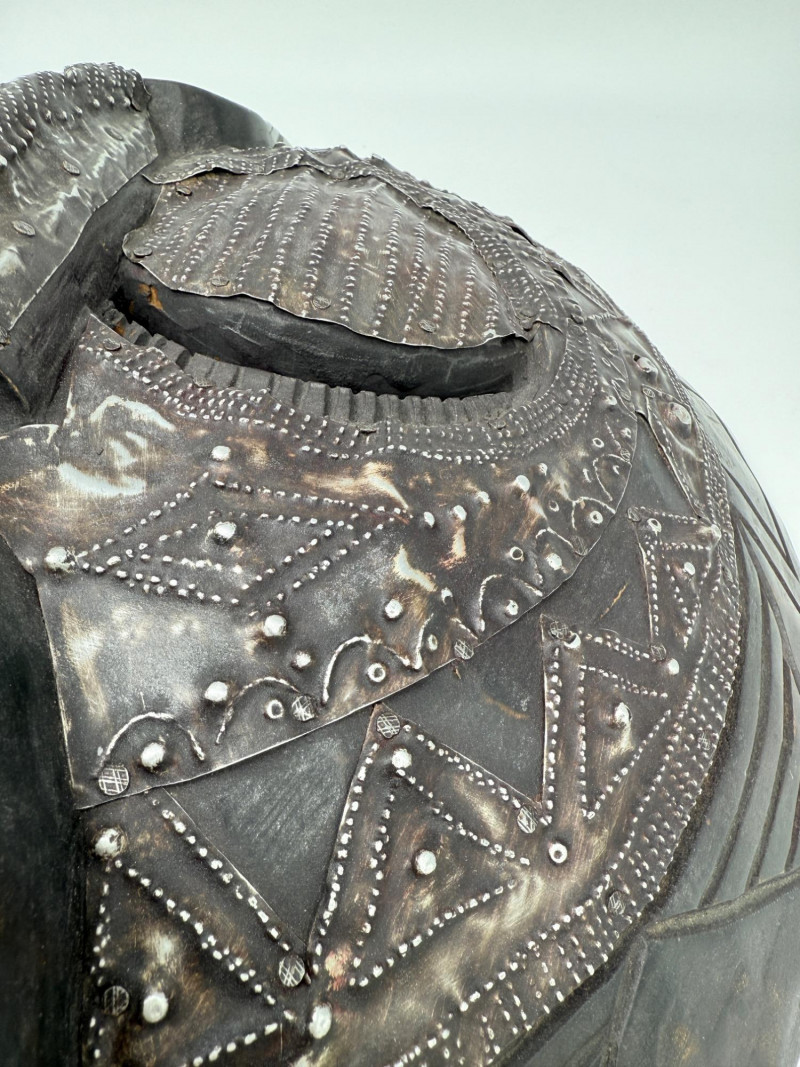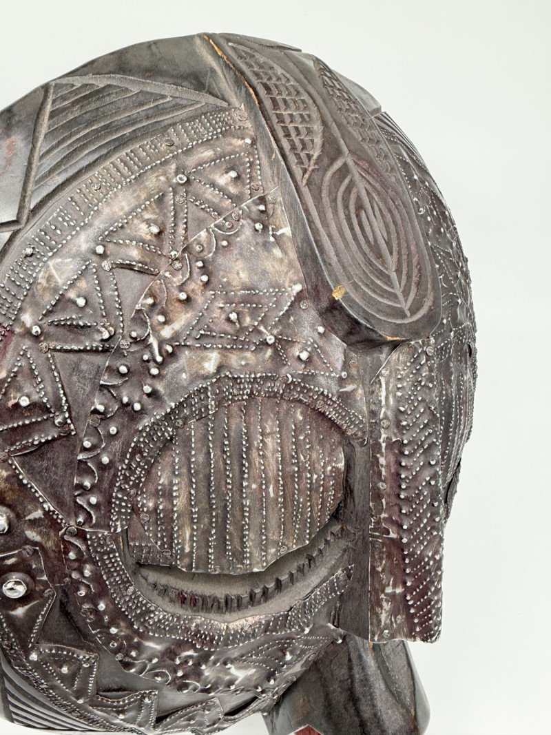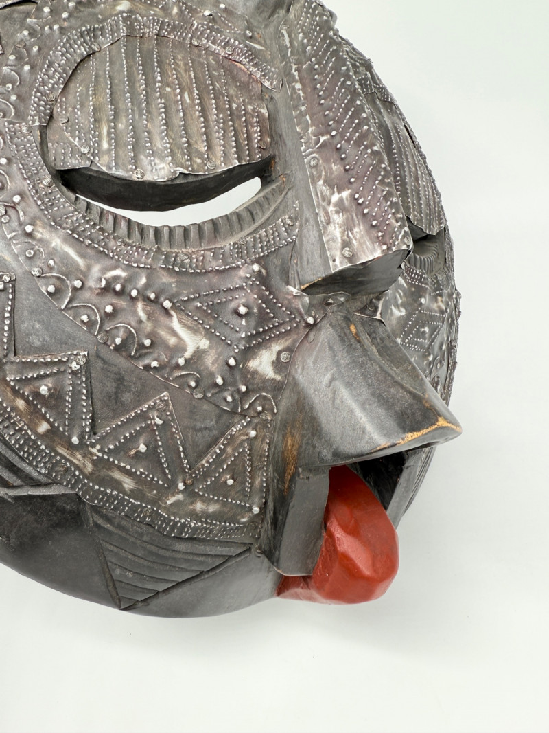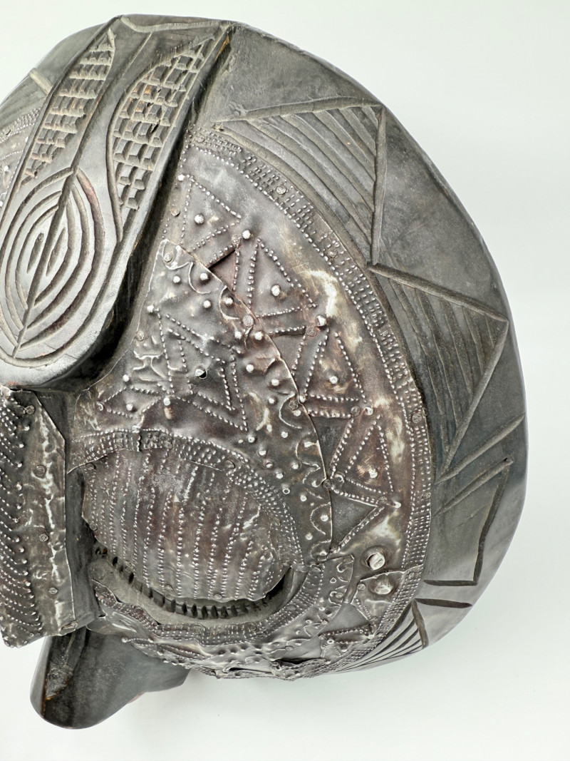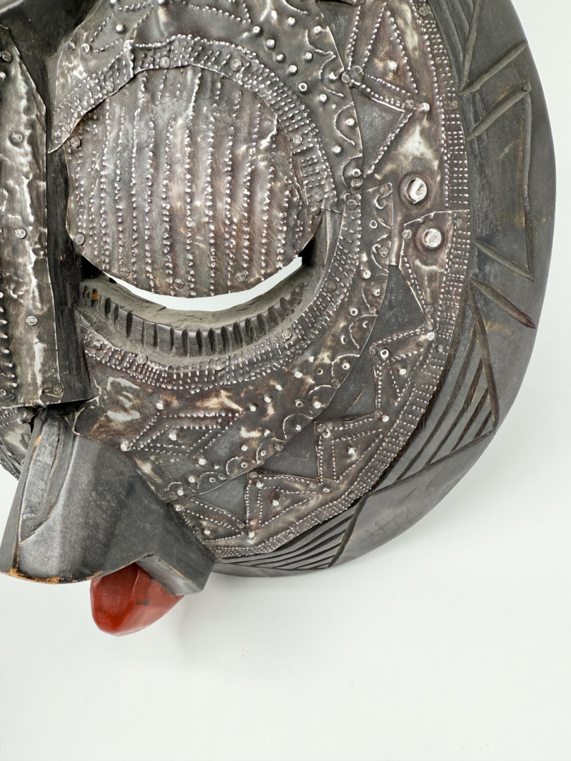 Lot # 21 - Vintage African Wood Mask: Handcrafted w/ Metal Design