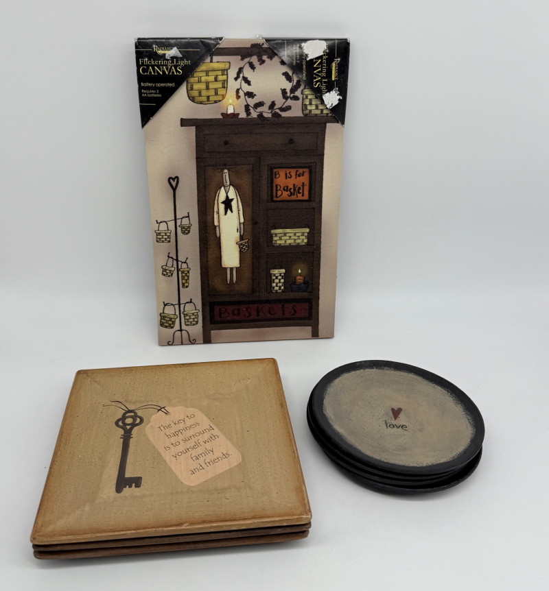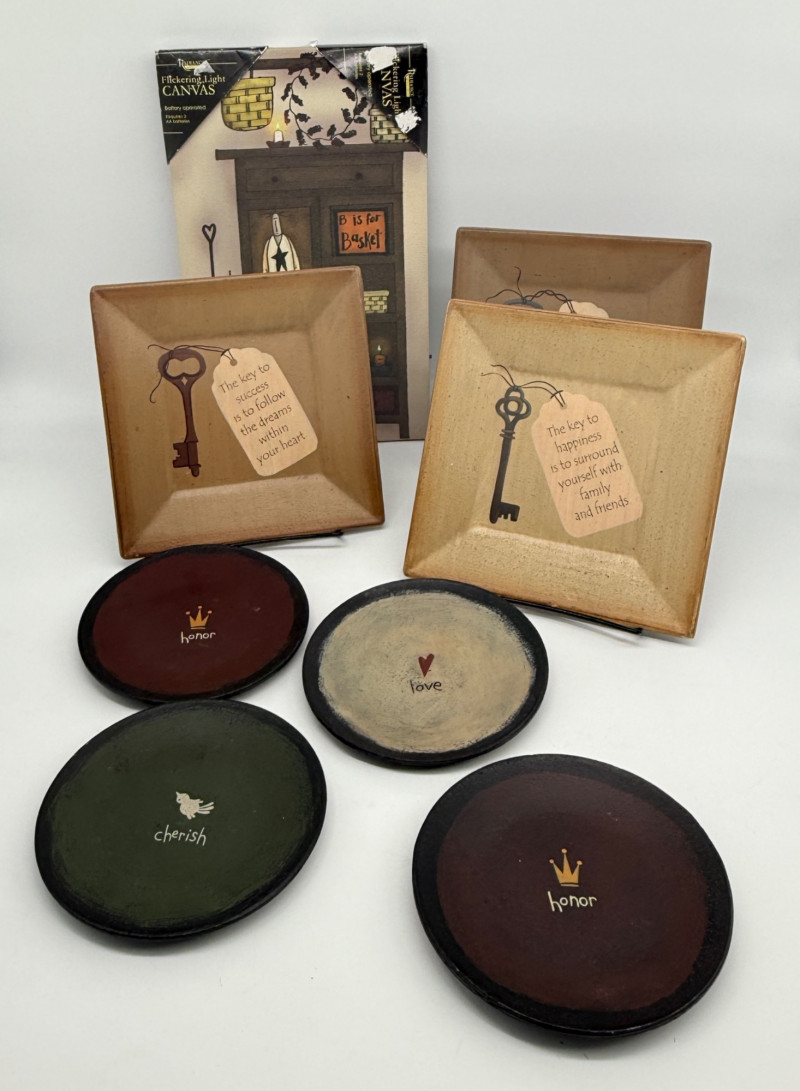 Lot # 115 - Flickering Light Canvas & Primitive Plates