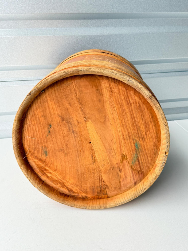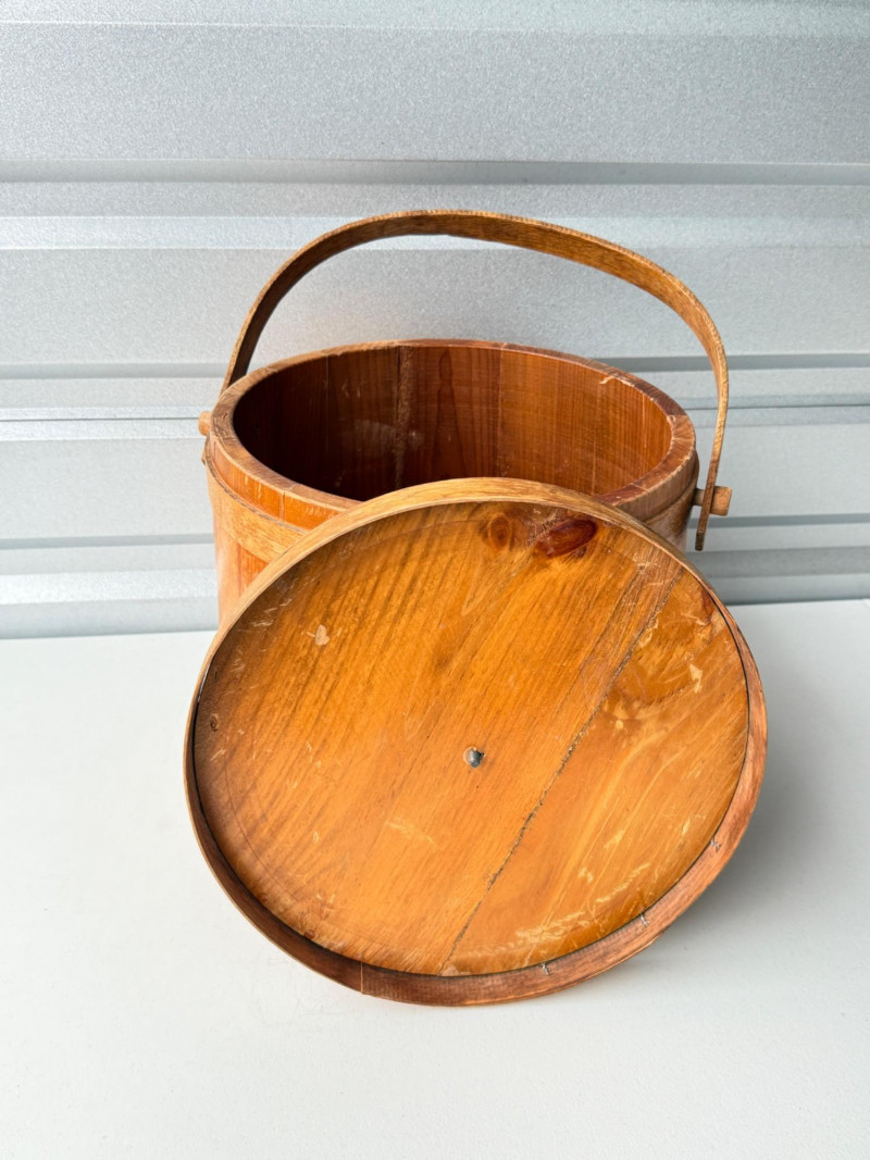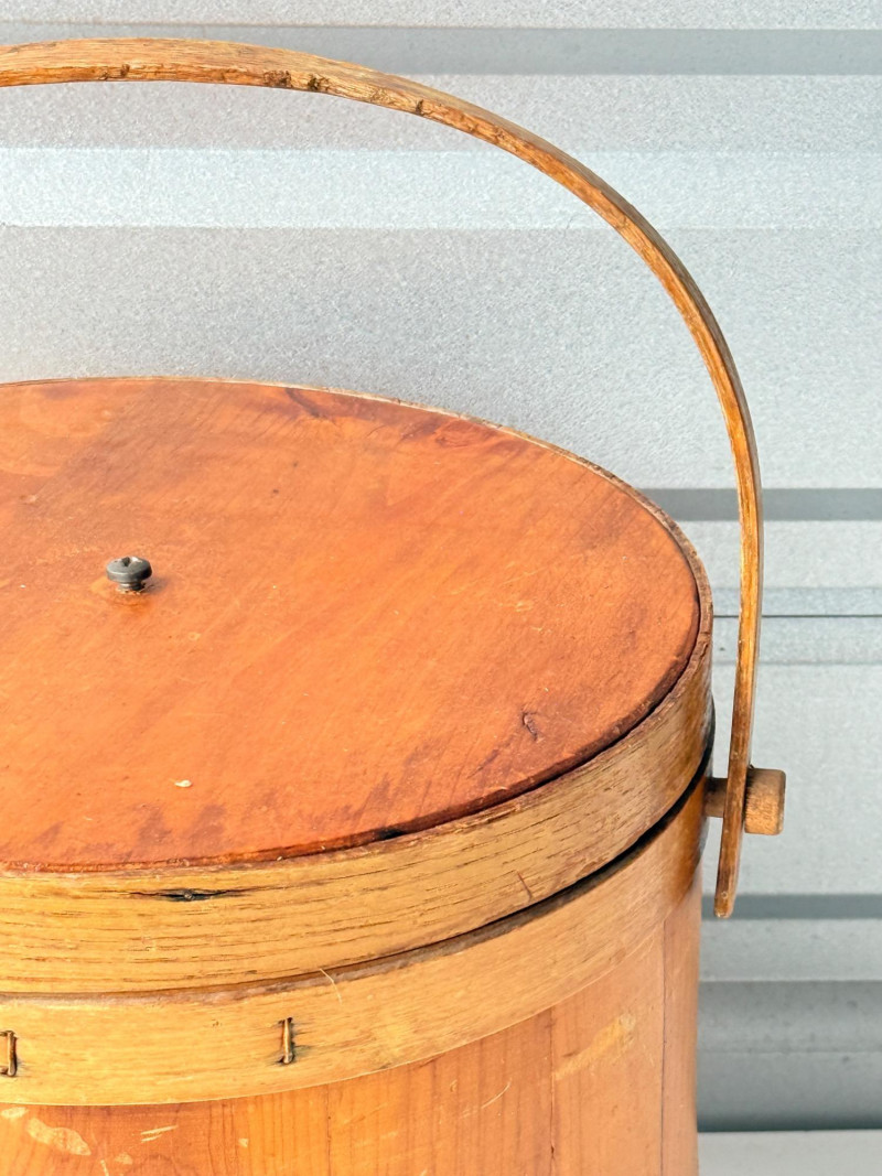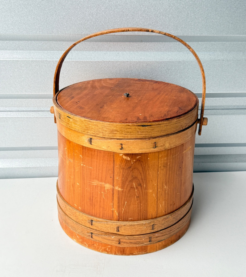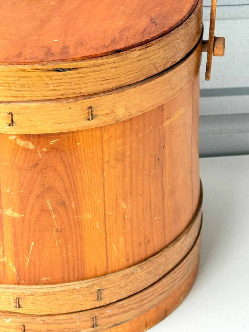 Antique Vintage Primitive Wooden Firkin Sugar Bucket w/ Lid