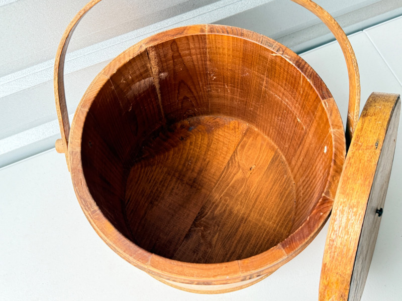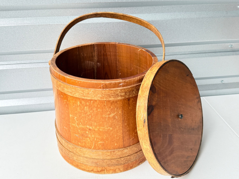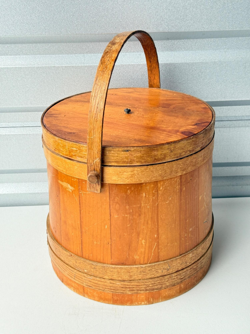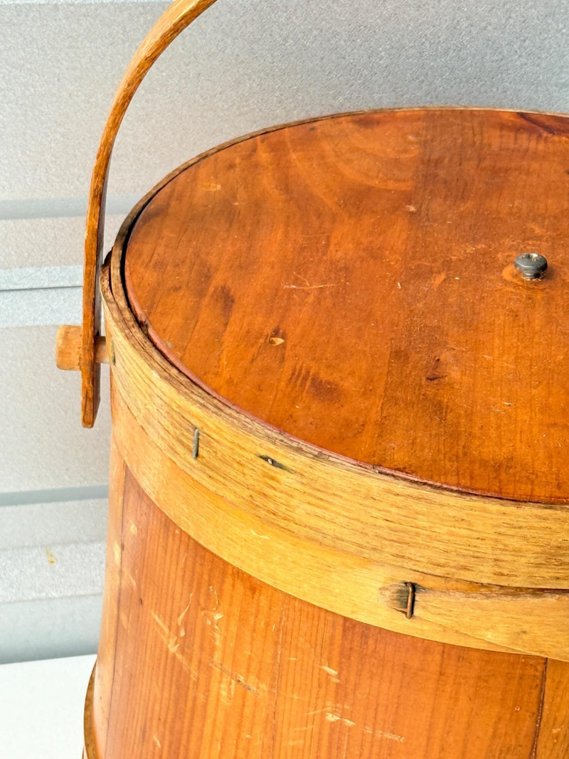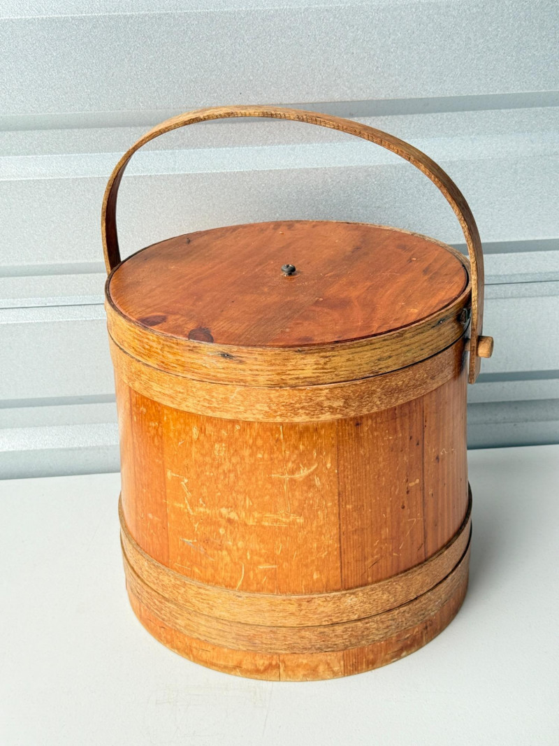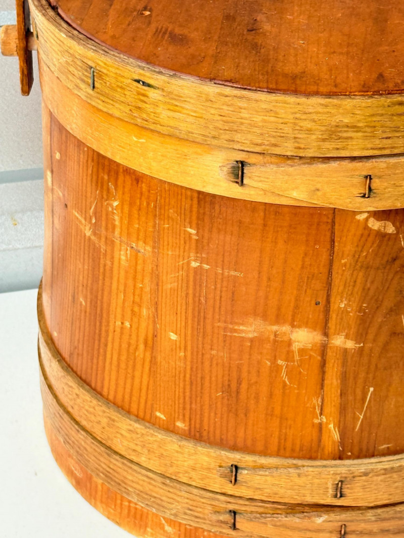 Lot # 72 - Antique Vintage Primitive Wooden Firkin Sugar Bucket w/ Lid