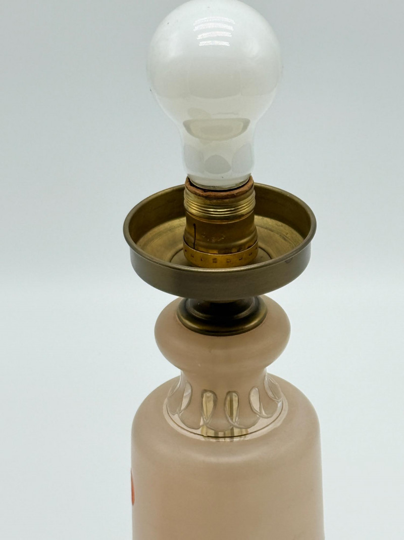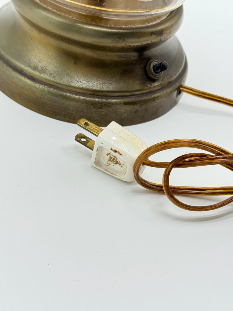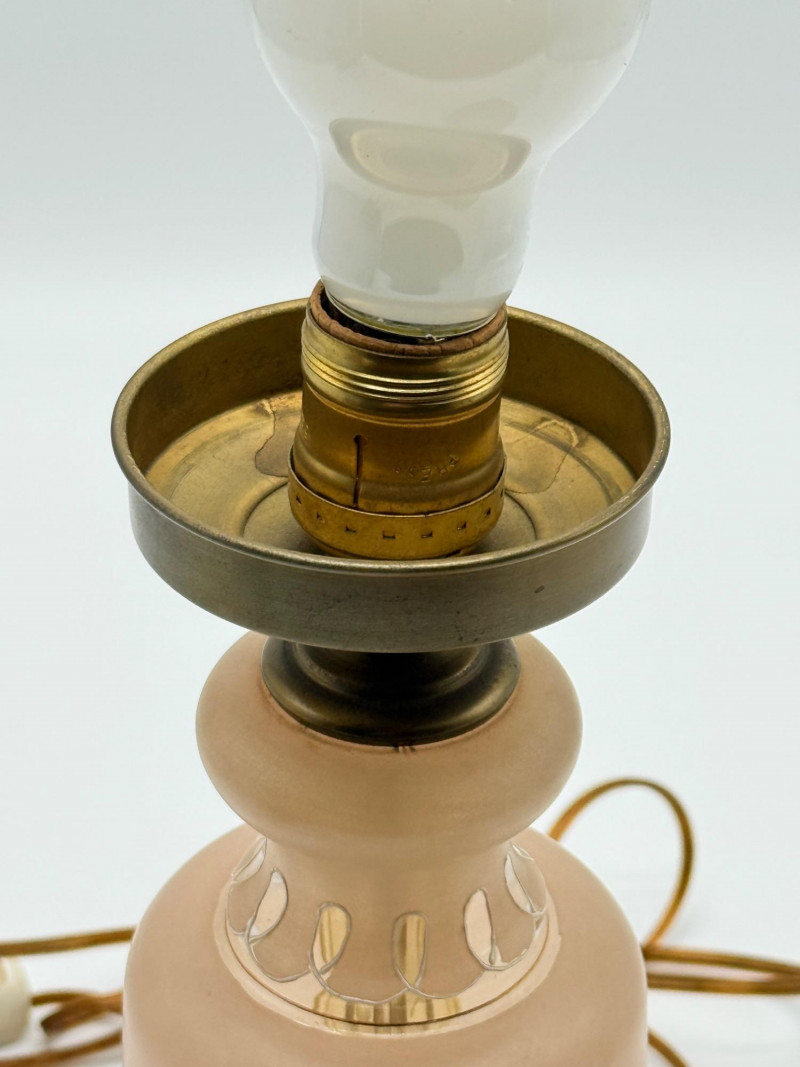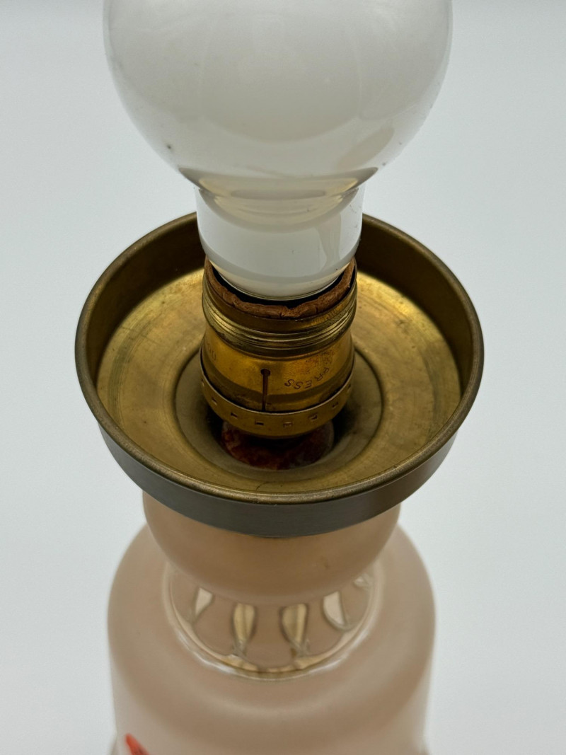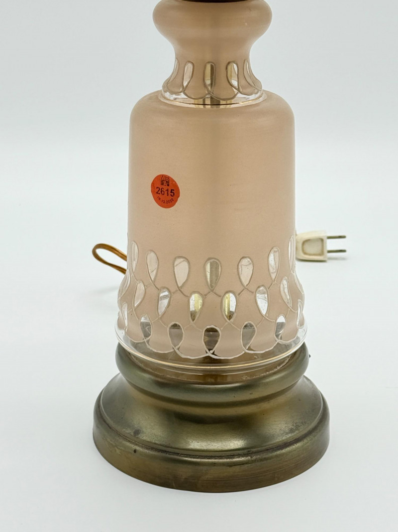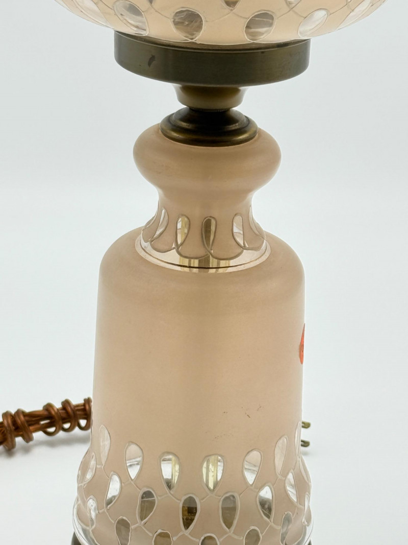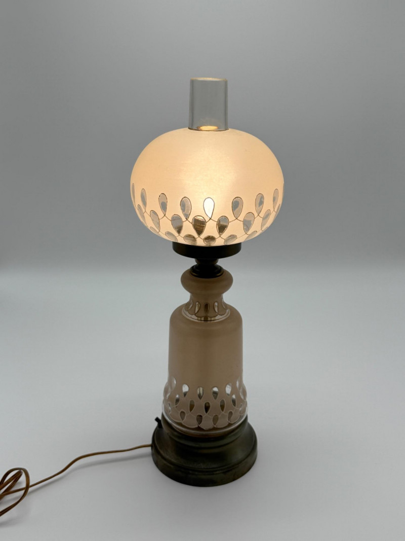 Vintage Pink Glass & Brass Base Hurricane Style Lamp Set
