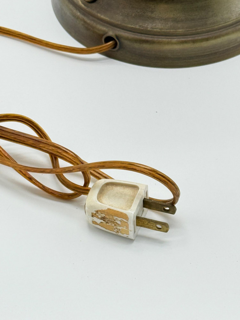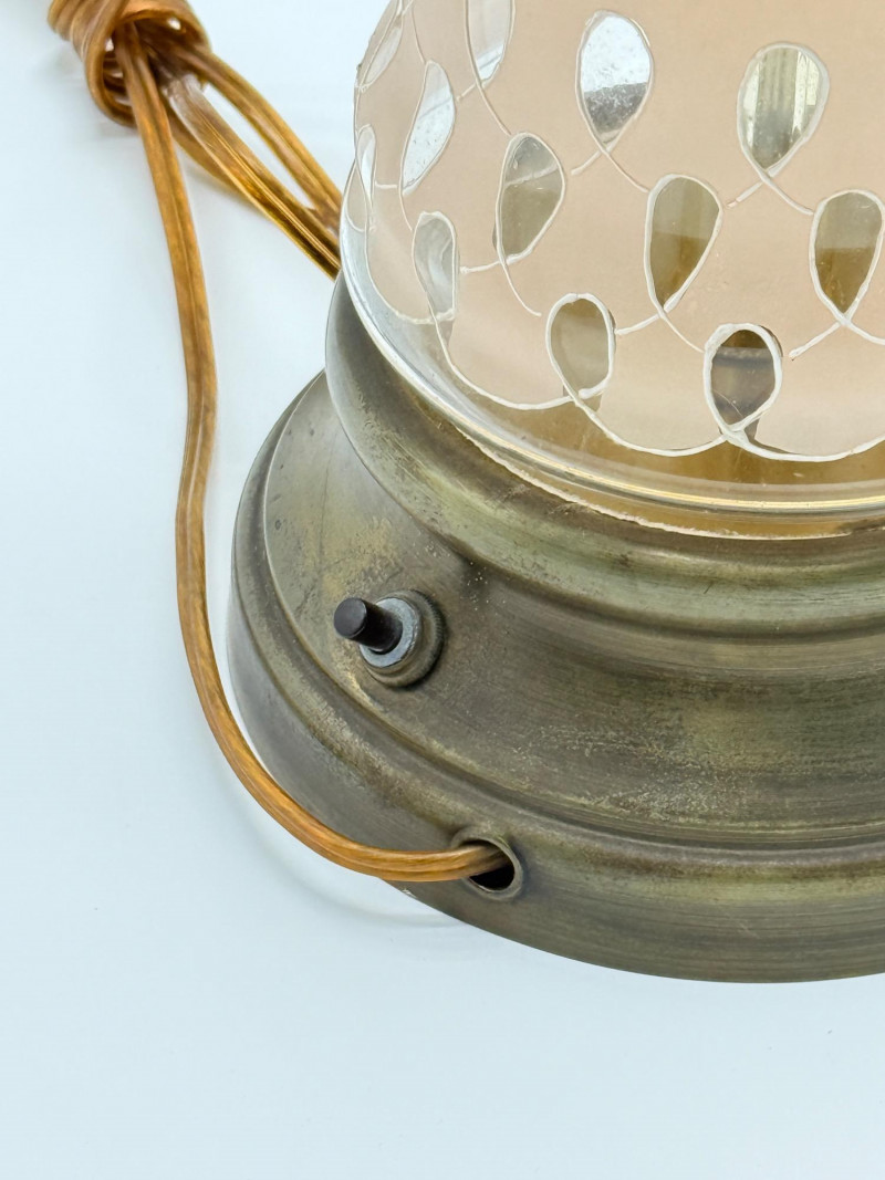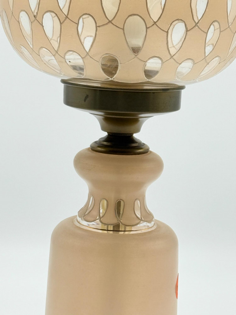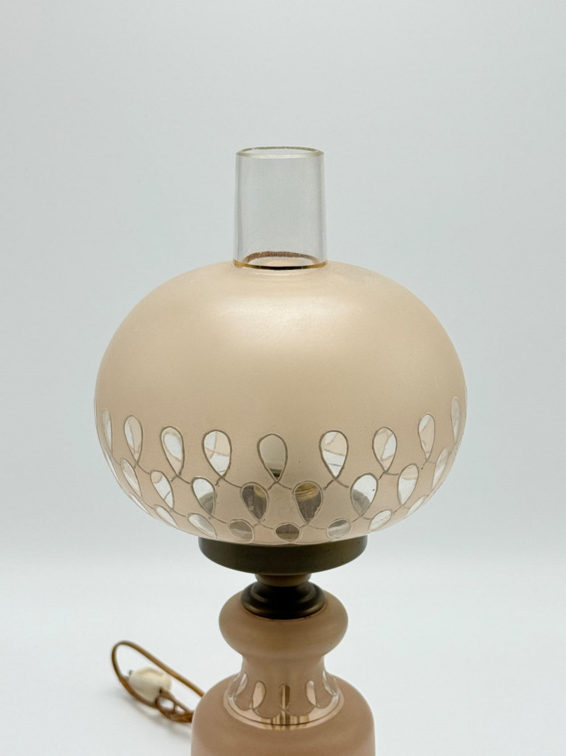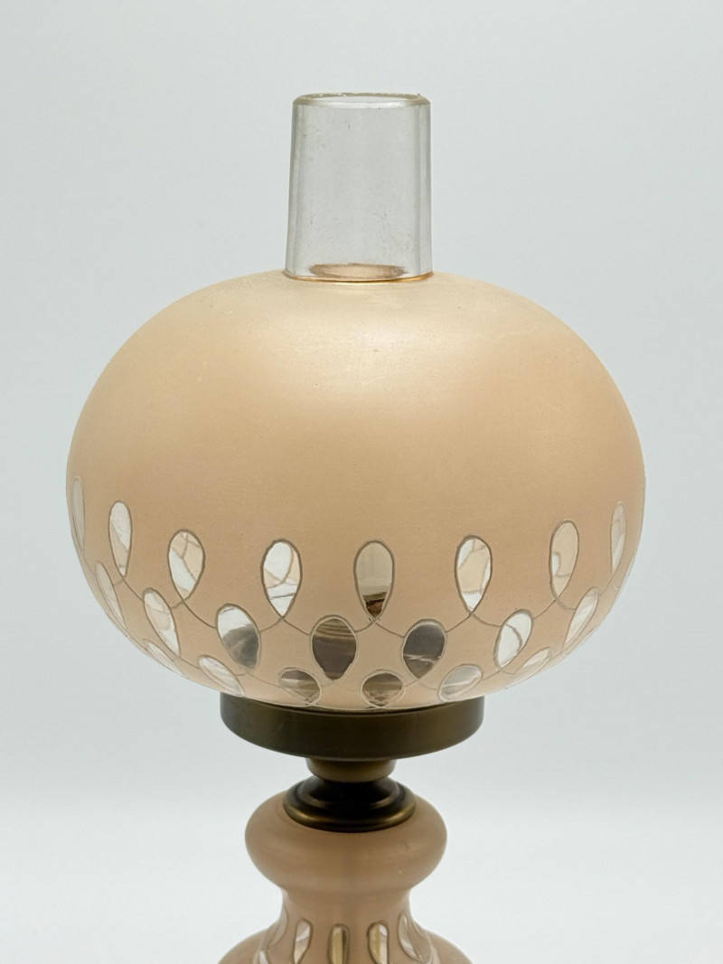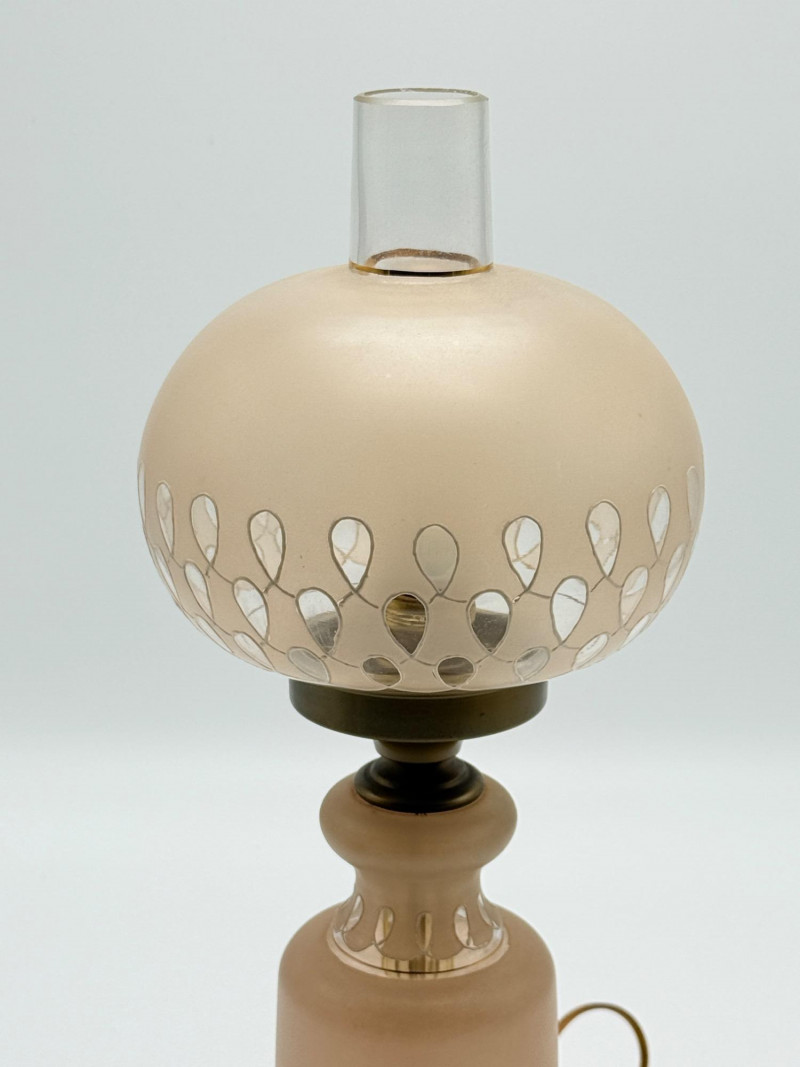 Vintage Pink Glass & Brass Base Hurricane Style Lamp Set