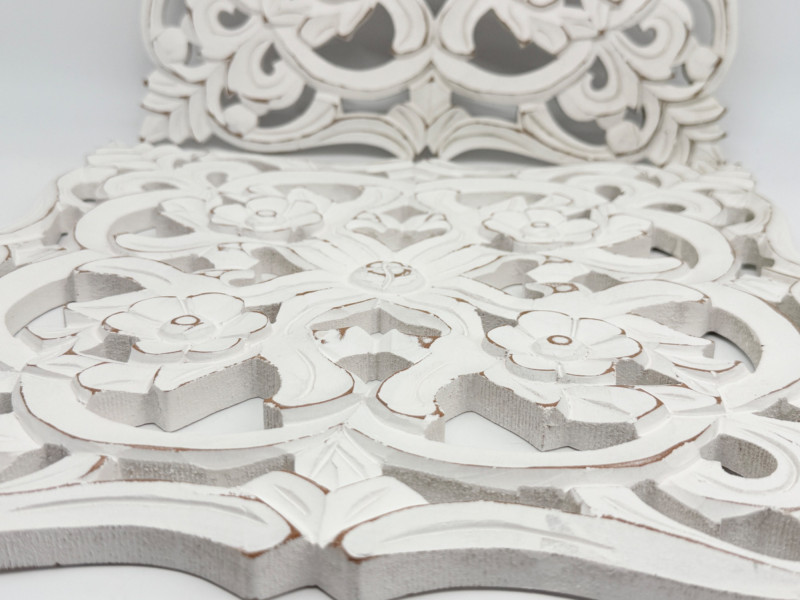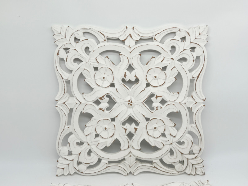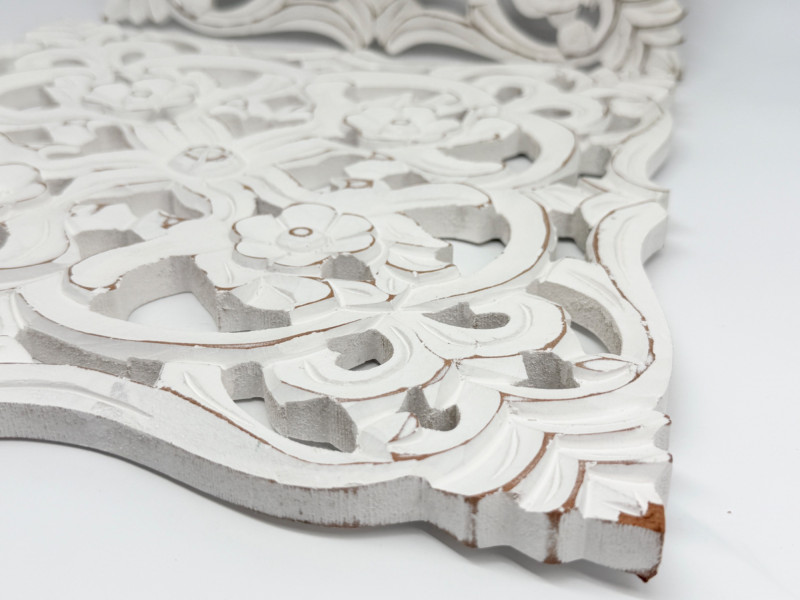 Distressed Wooden Carved Floral Wall Decor