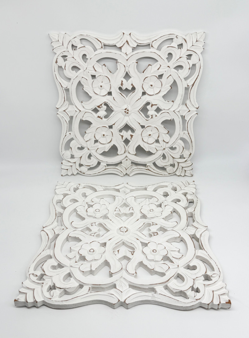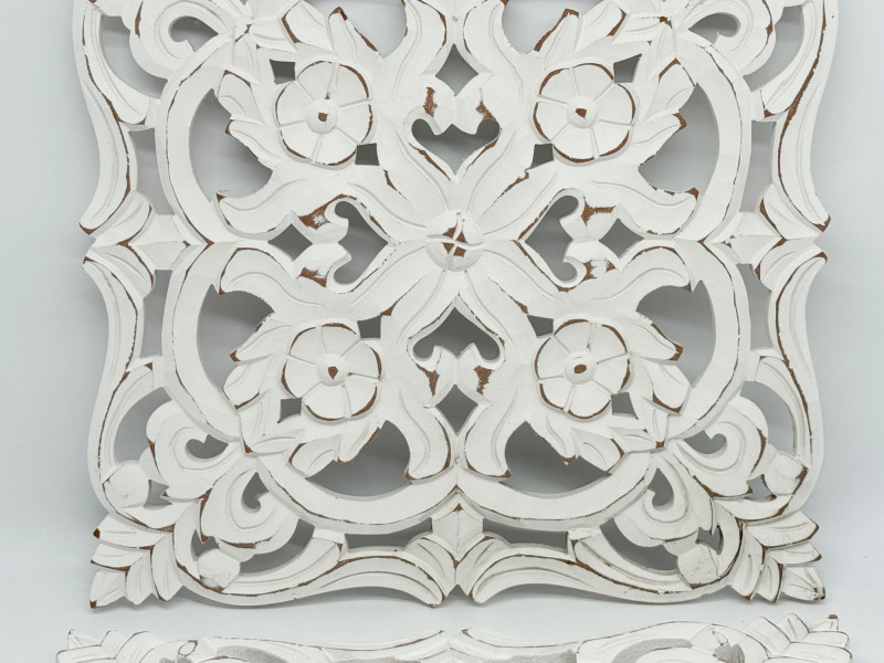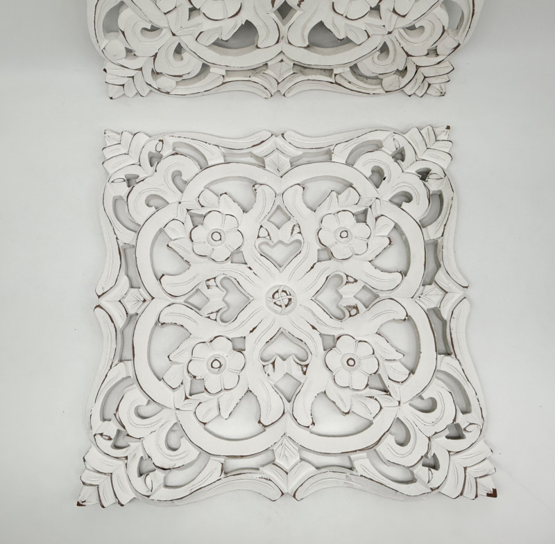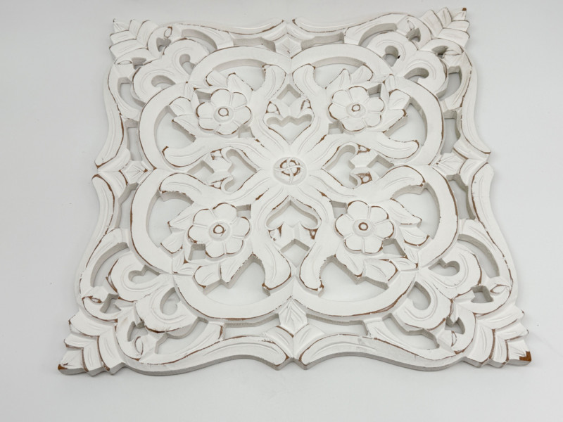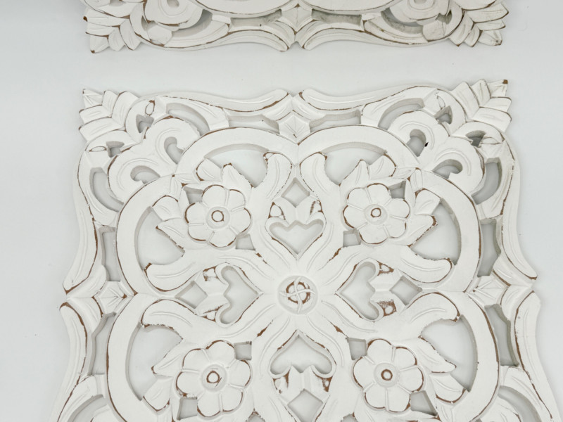 Lot # 163 - Distressed Wooden Carved Floral Wall Decor