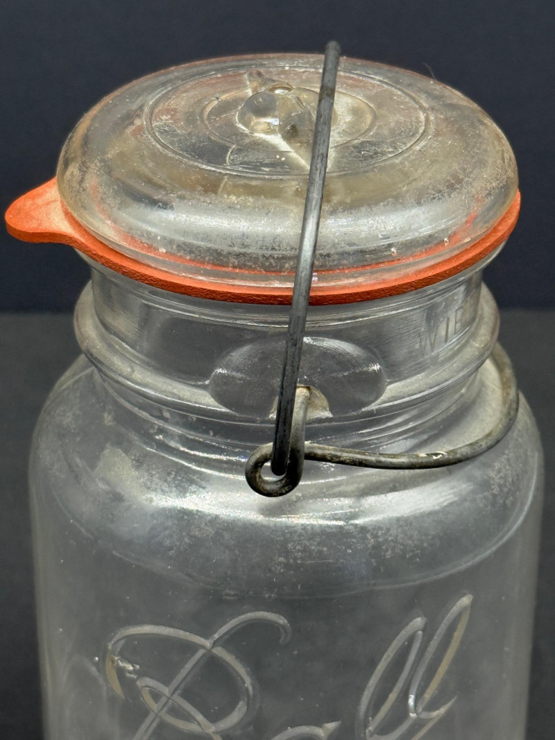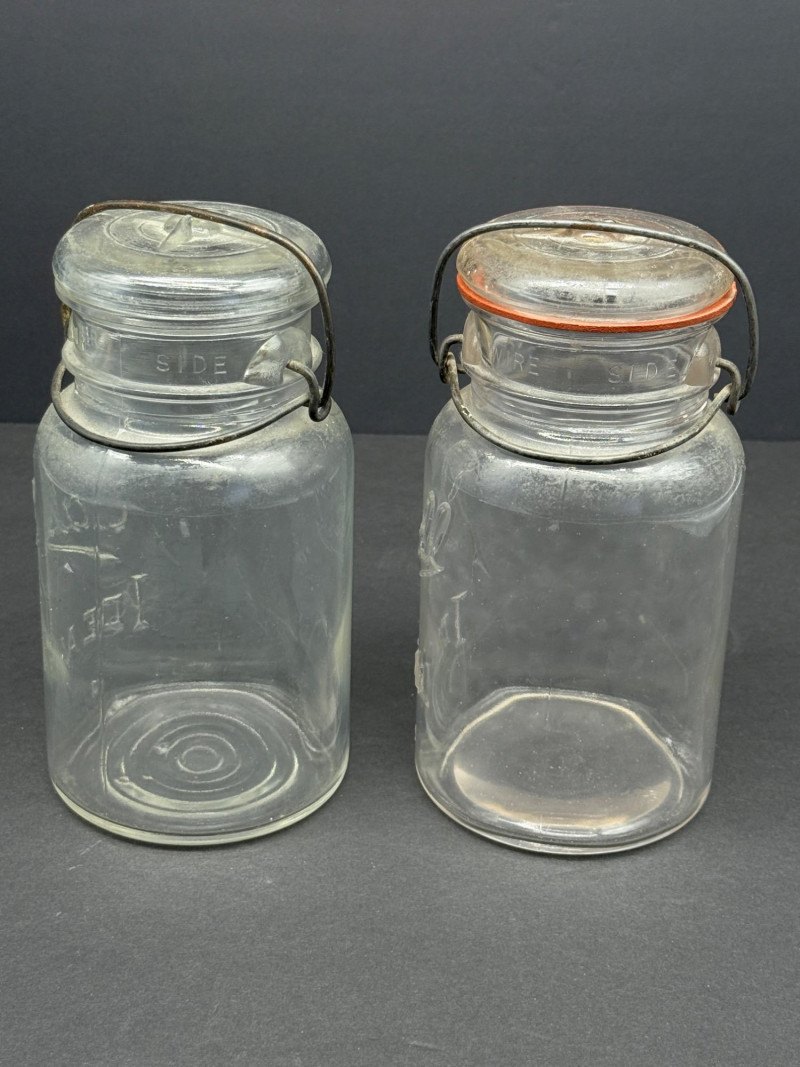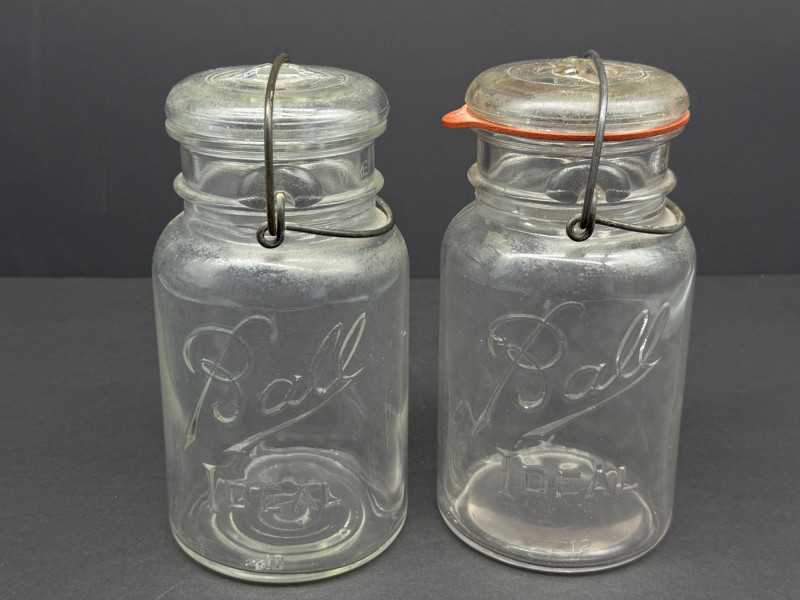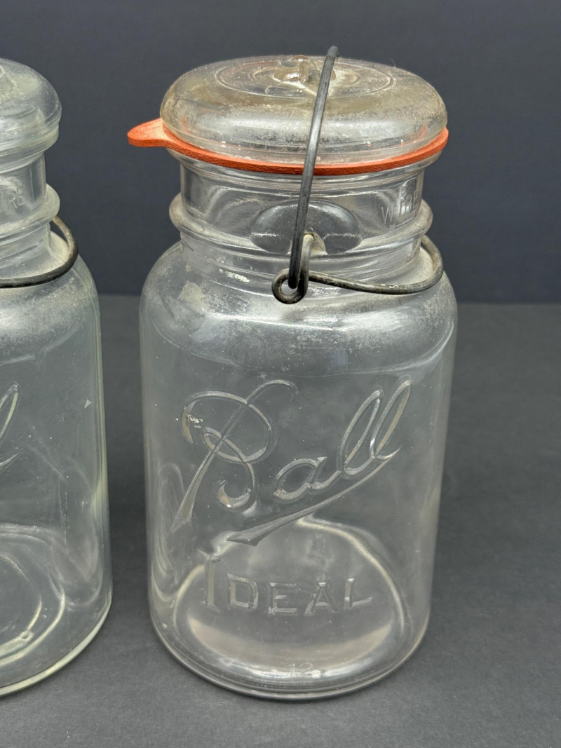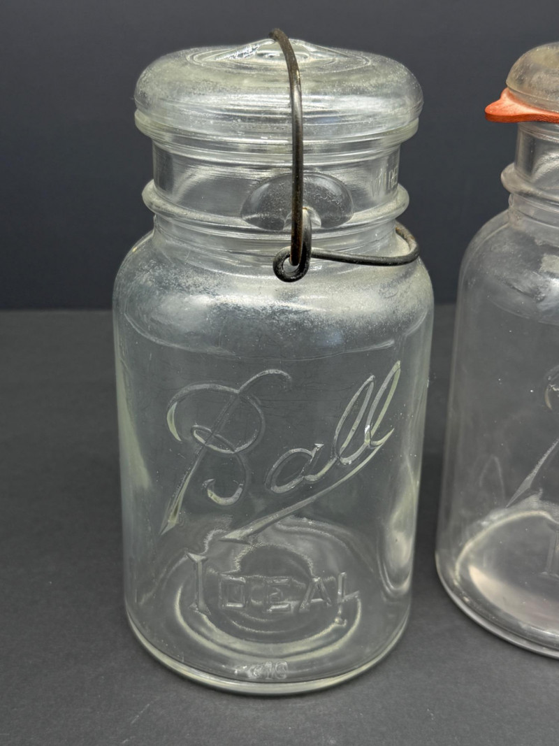 Lot # 75 - Vintage Ball Ideal Quart Mason Jars w/ Wire Bail & Glass Lid
