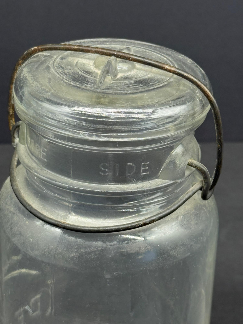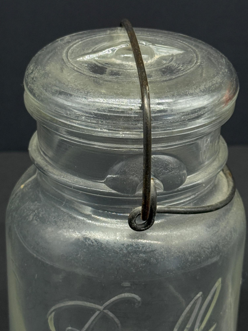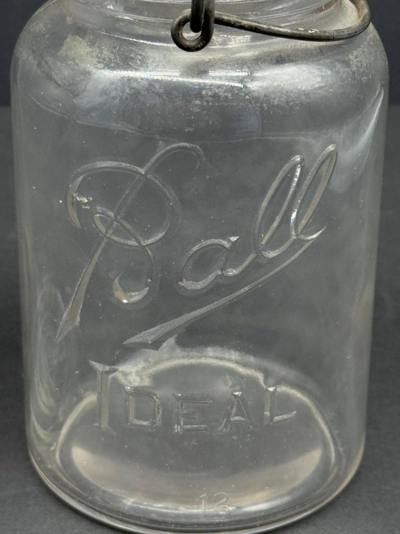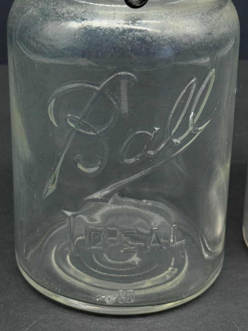 Lot # 75 - Vintage Ball Ideal Quart Mason Jars w/ Wire Bail & Glass Lid