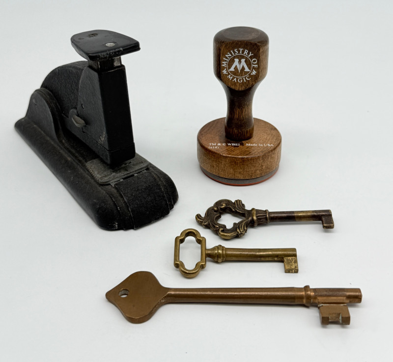 Lot # 58 - Vintage Stapler, Ministry of Magic Stamp + Skeleton Keys