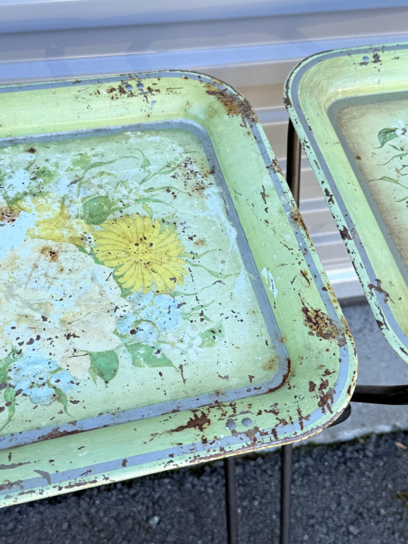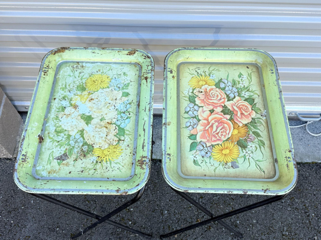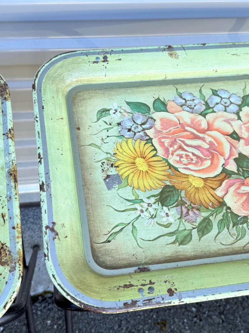 Lot # 74 - Vintage Floral Metal TV Trays