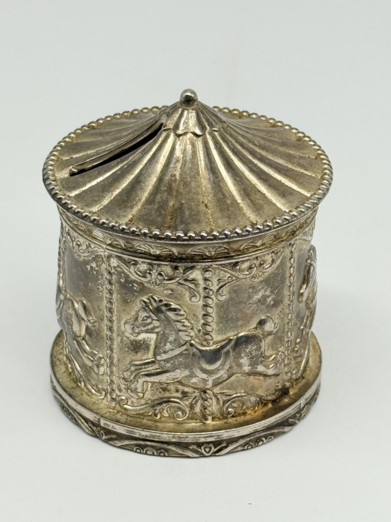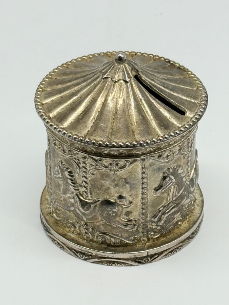 Lot # 78 - Vintage Silver Plated Carousel Piggy Bank