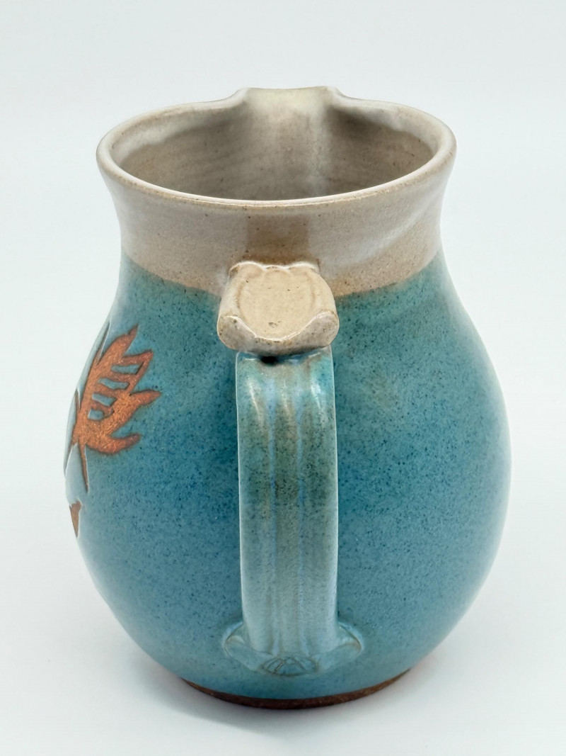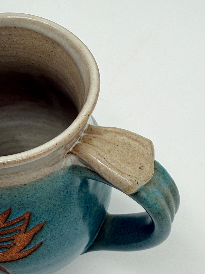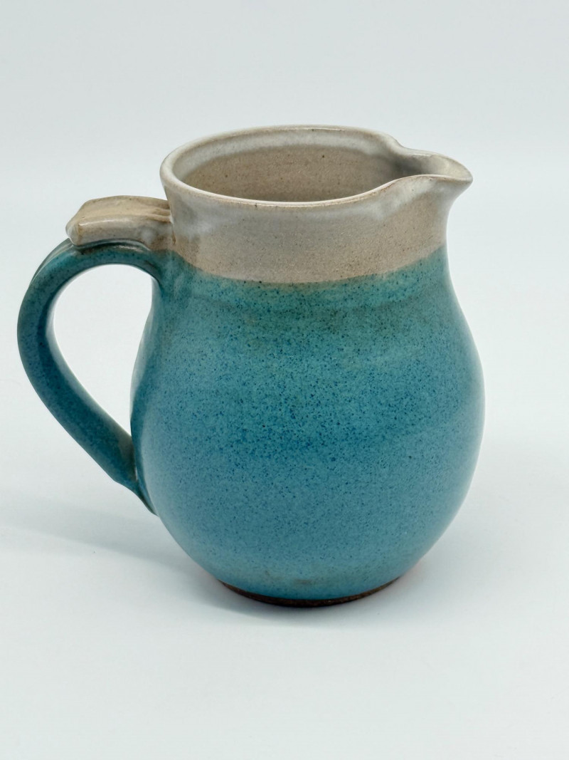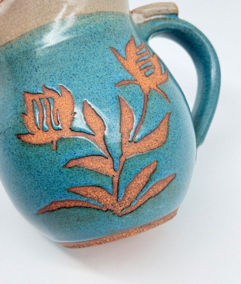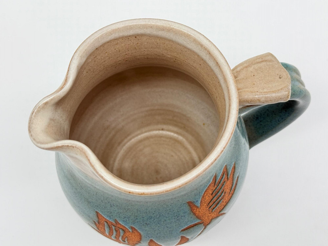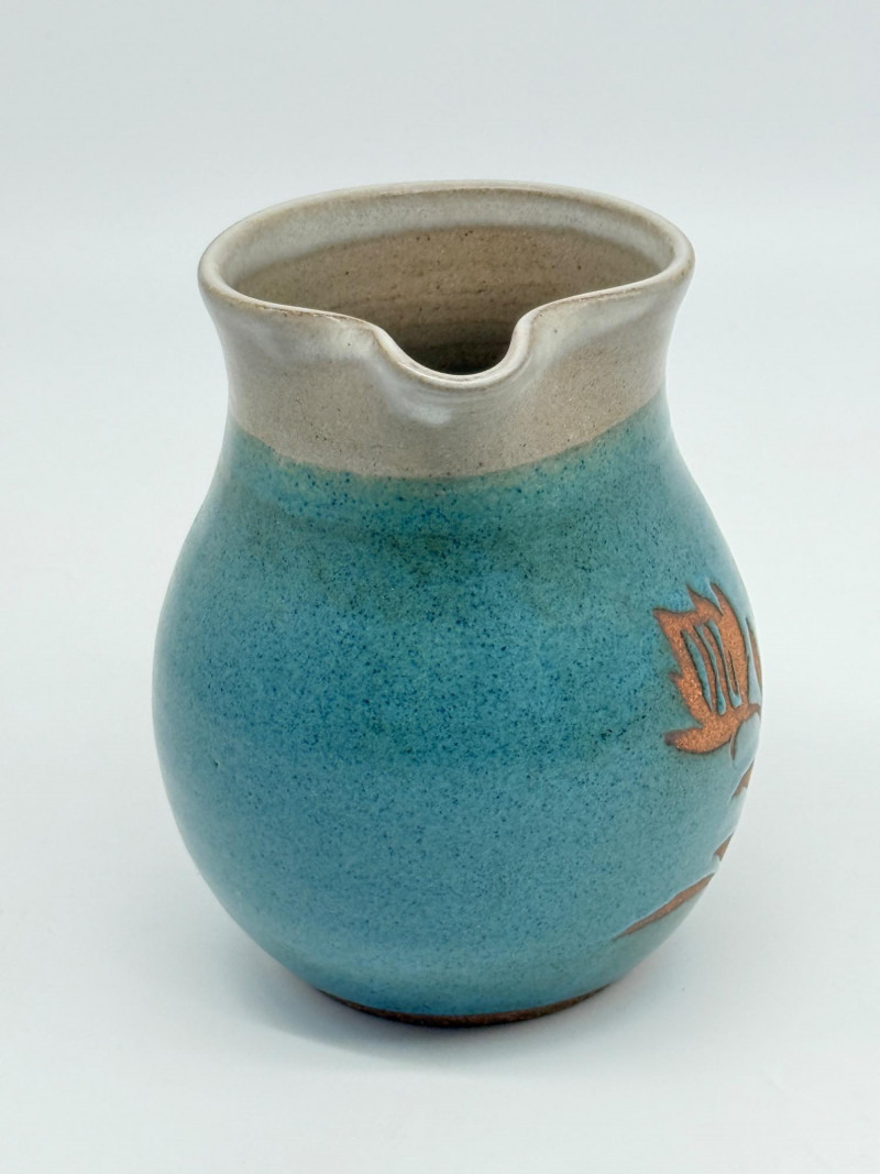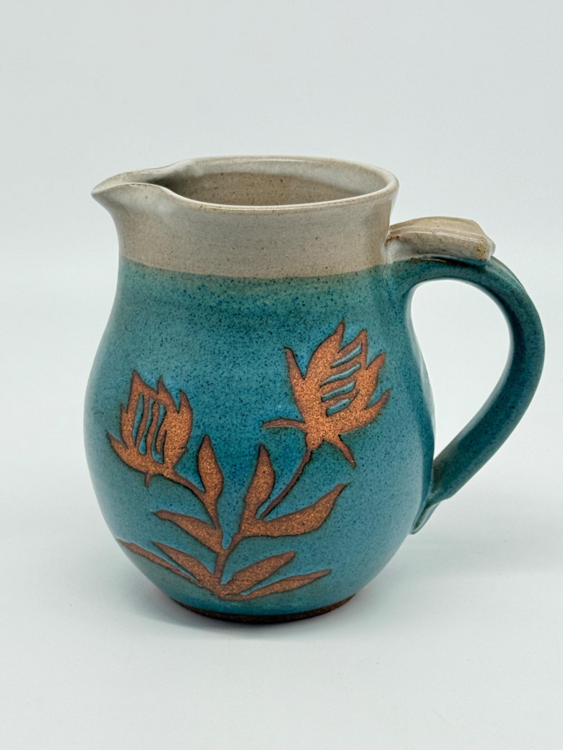 Vintage Turquoise & Grey Pottery Pitcher w/ Flower Design