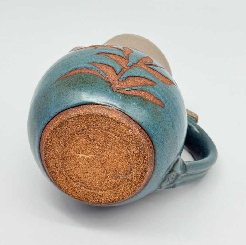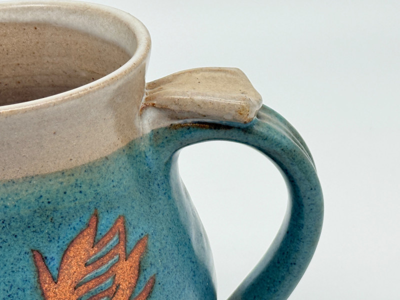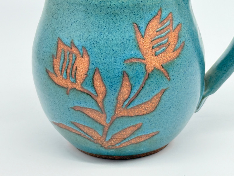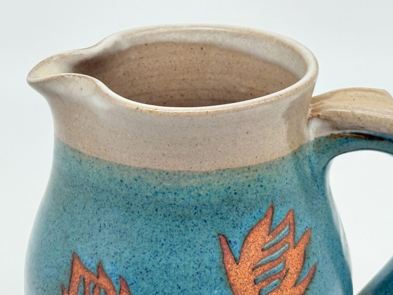 Lot # 57 - Vintage Turquoise & Grey Pottery Pitcher w/ Flower Design