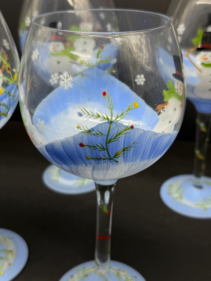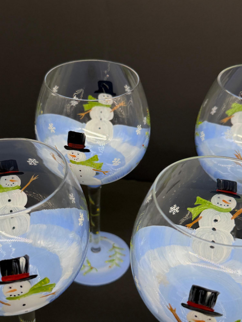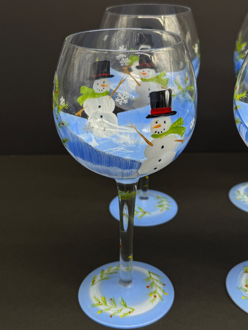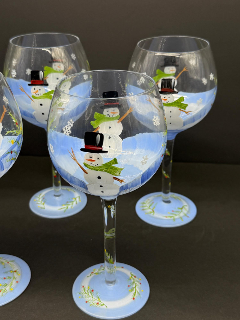 Lot # 144 - Hand Painted Snowman Wine Glasses