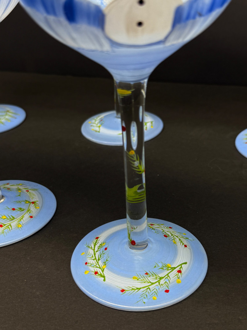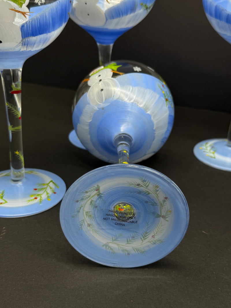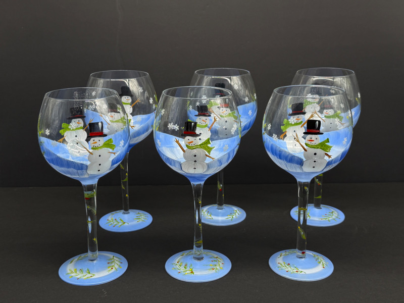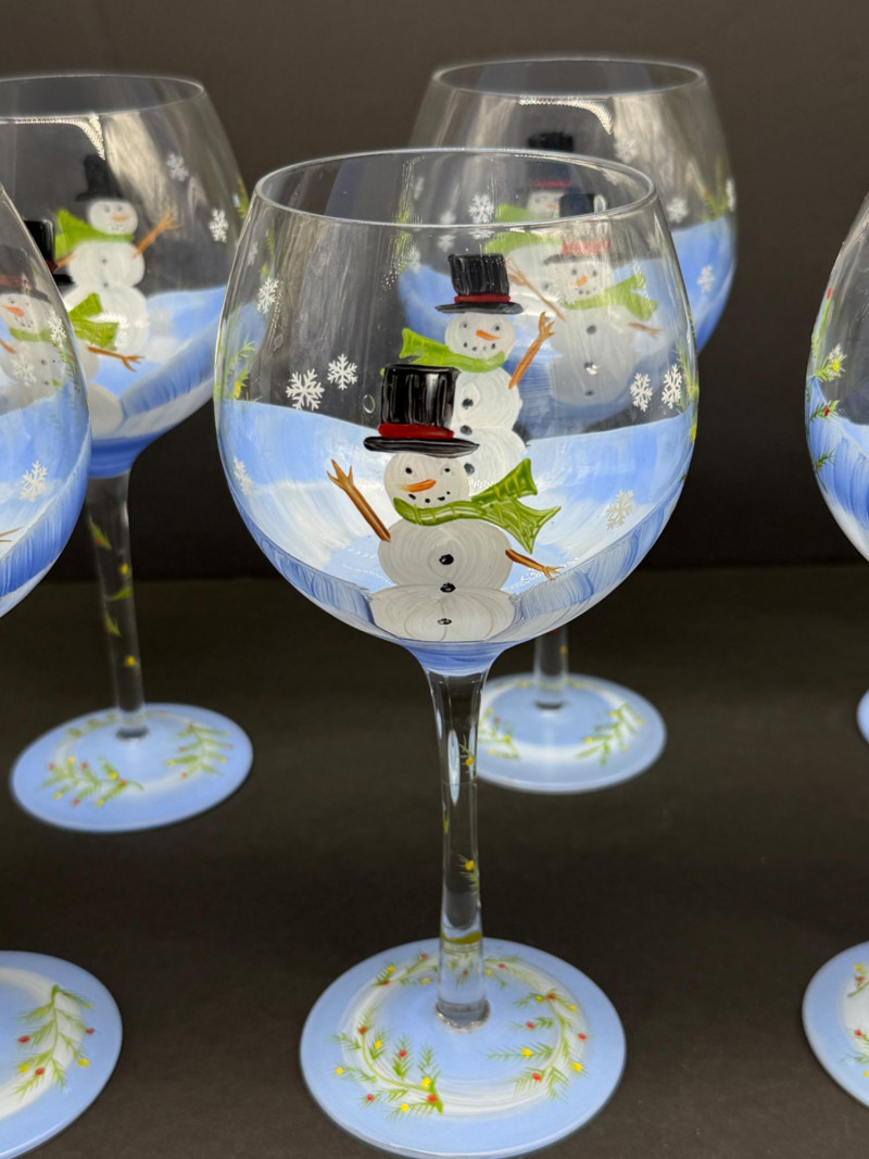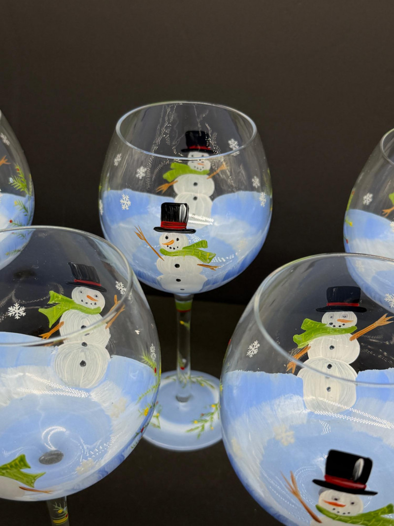 Lot # 144 - Hand Painted Snowman Wine Glasses
