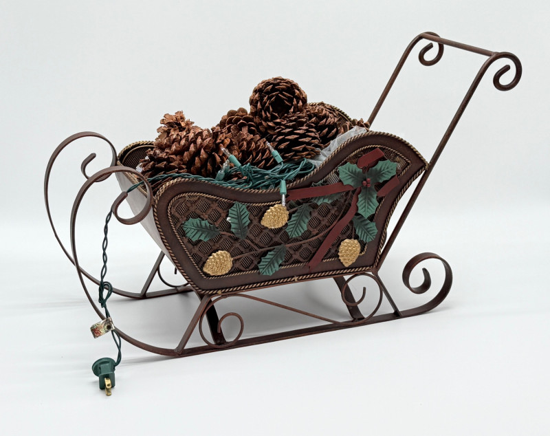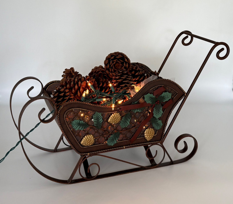 Lot # 139 - Large Metal Sleigh w/ Scented Pine Cones & Lights