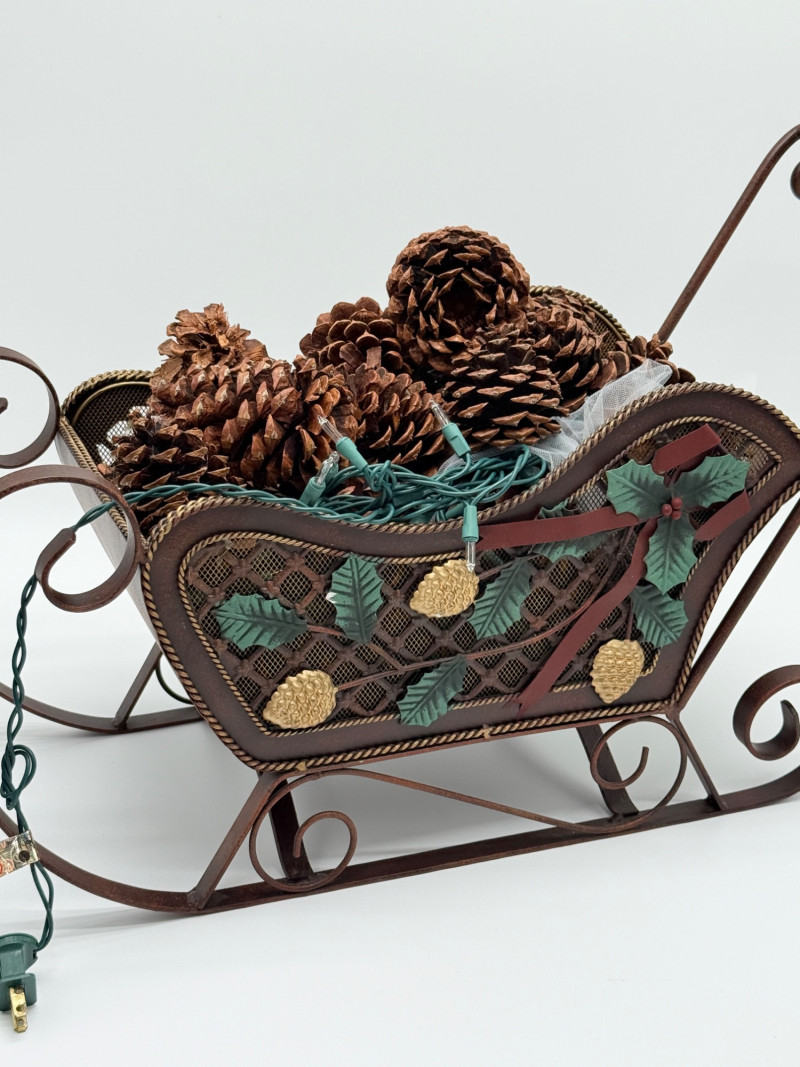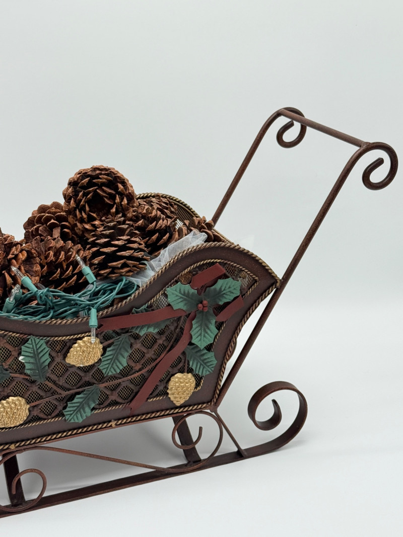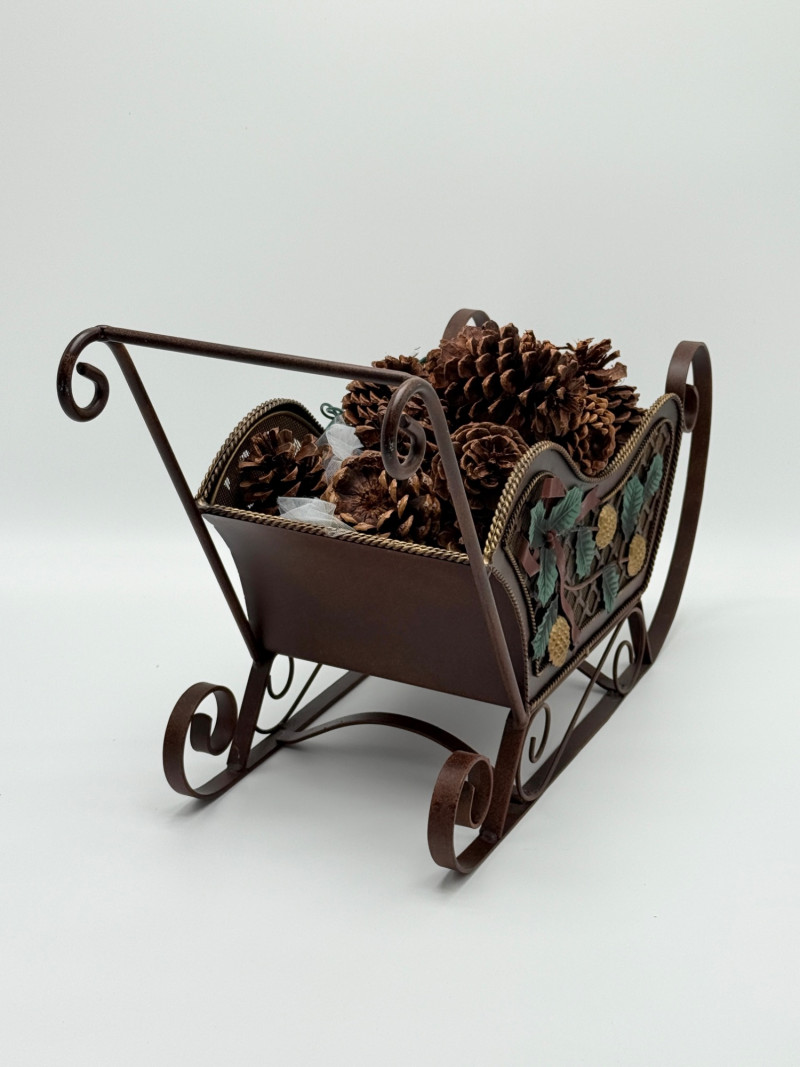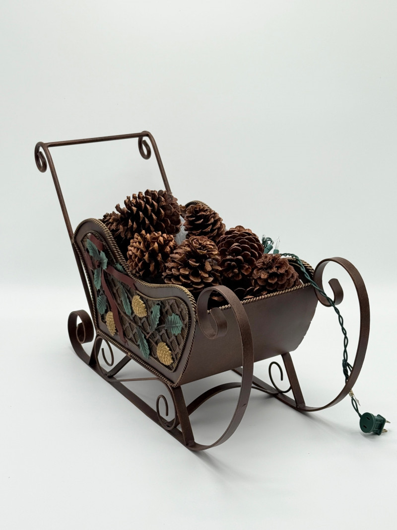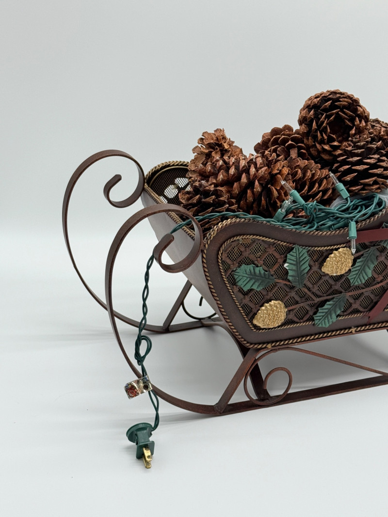 Large Metal Sleigh w/ Scented Pine Cones & Lights