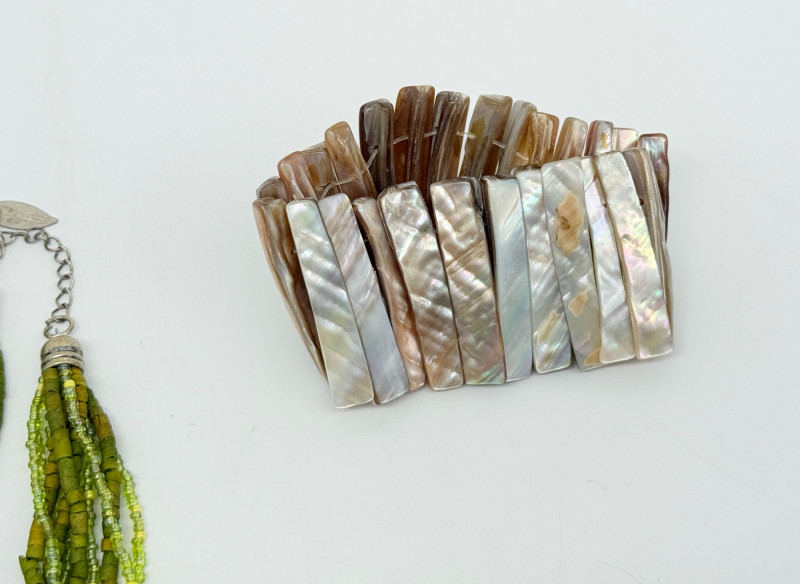 Lot # 80 - Jewelry: Stone, Mother of Pearl & Beaded Necklace & Bracelets