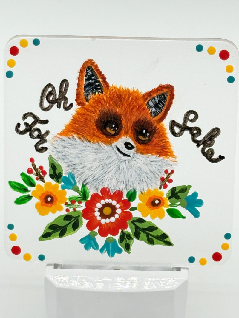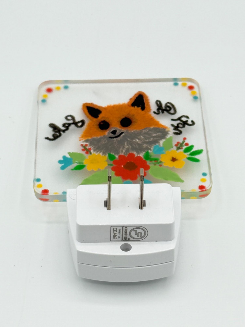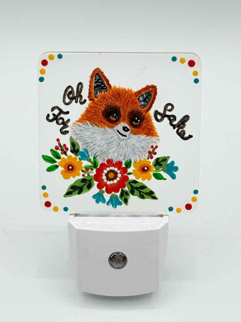 Judy's Hand Painted Fox Night Light - Arlington Artist Help Support Local Artist