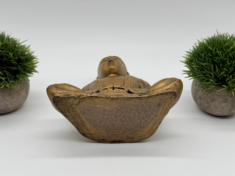 Lot # 123 - 9" Meditating Buddhist Monk Figurine + Artificial Plants