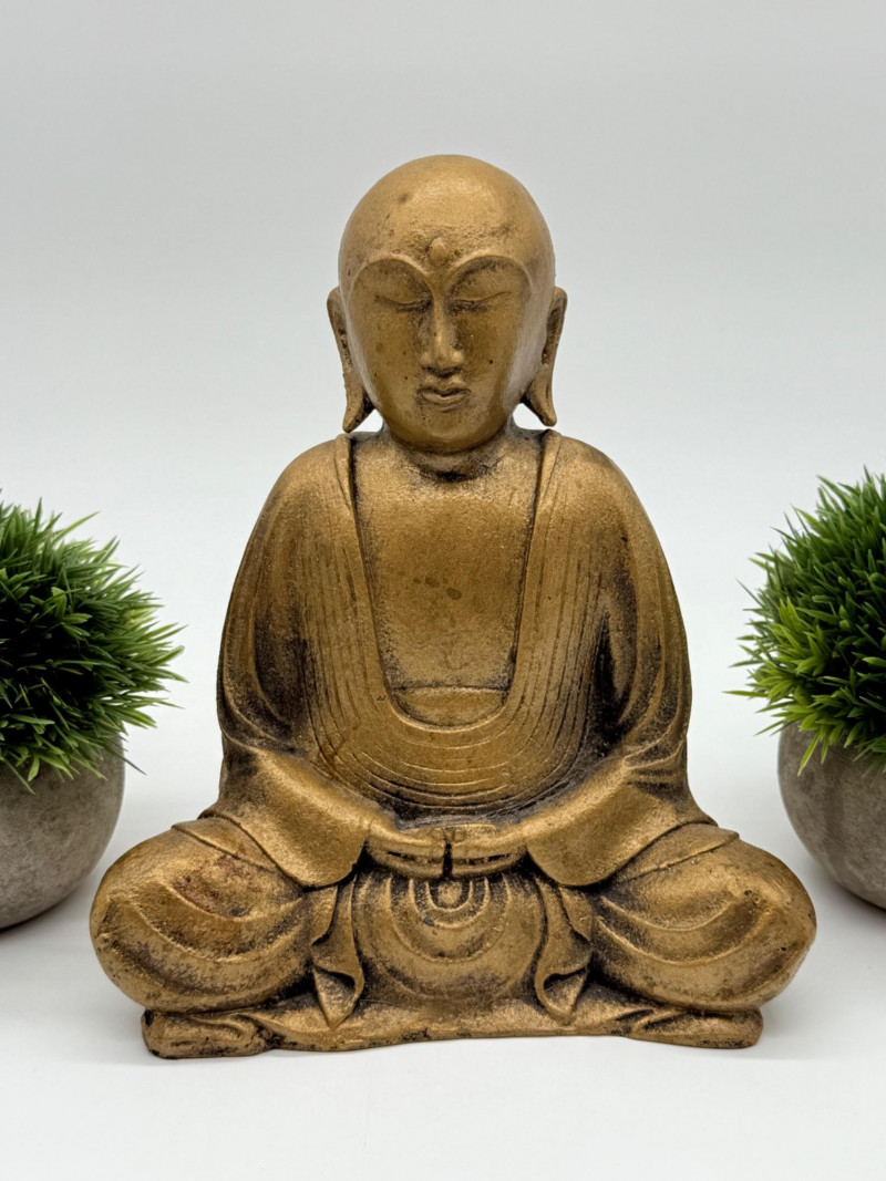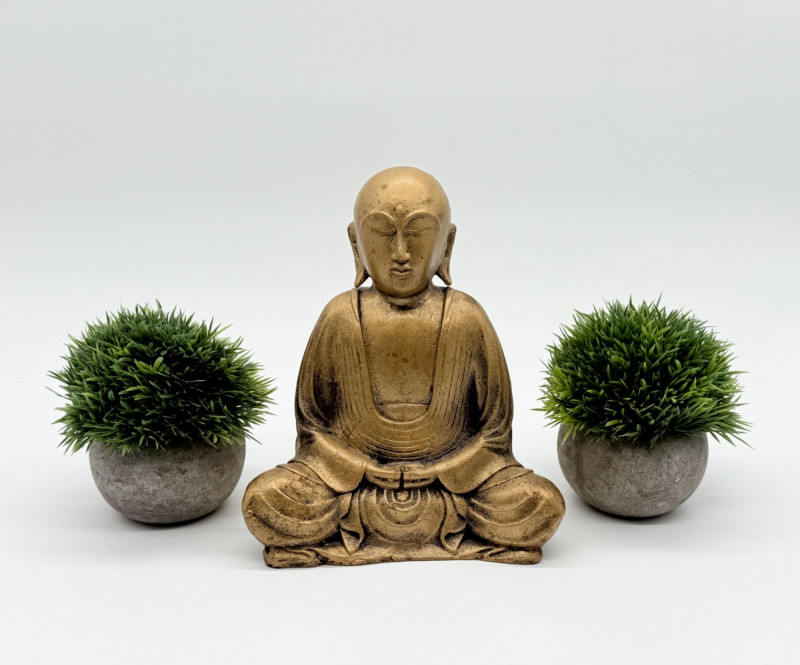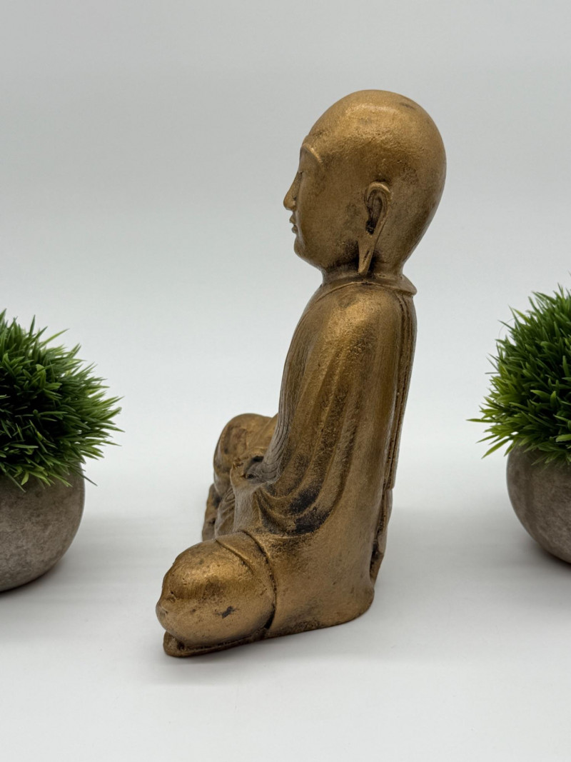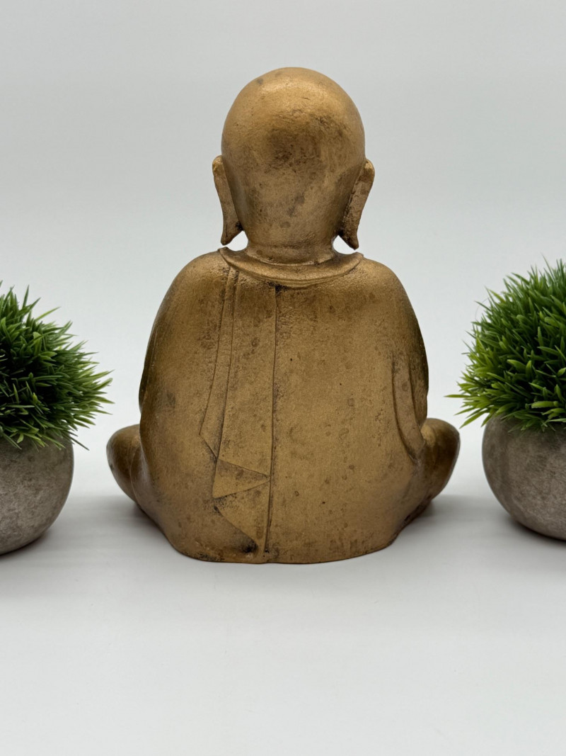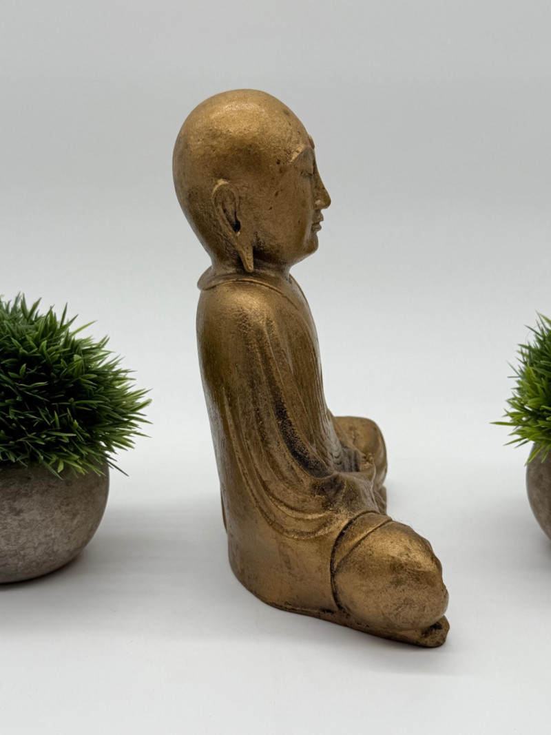 9" Meditating Buddhist Monk Figurine + Artificial Plants