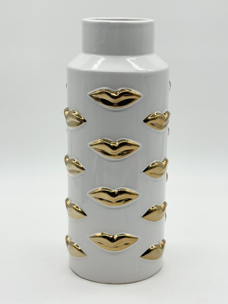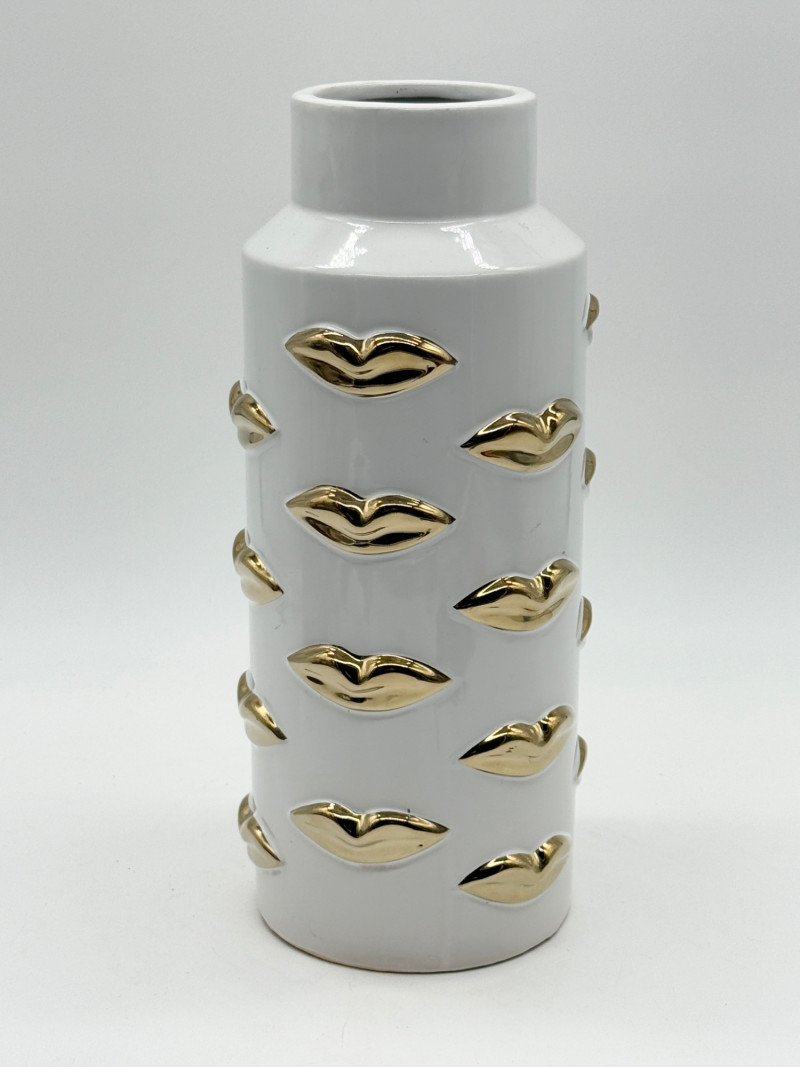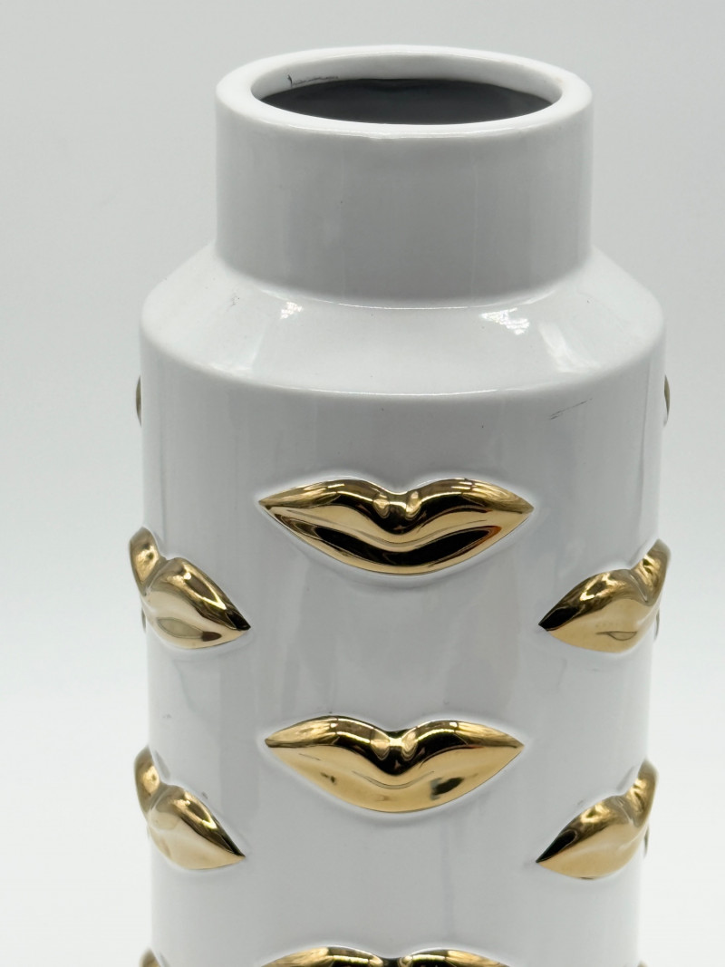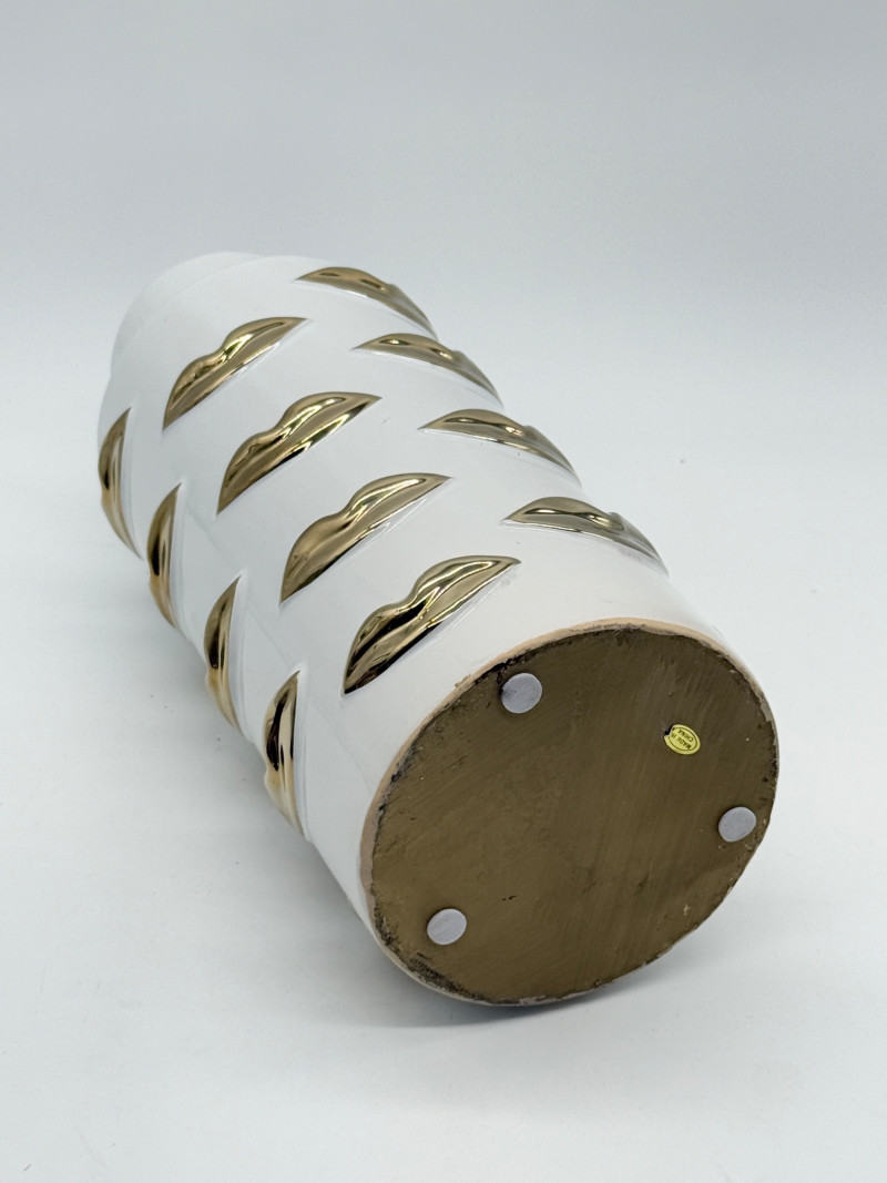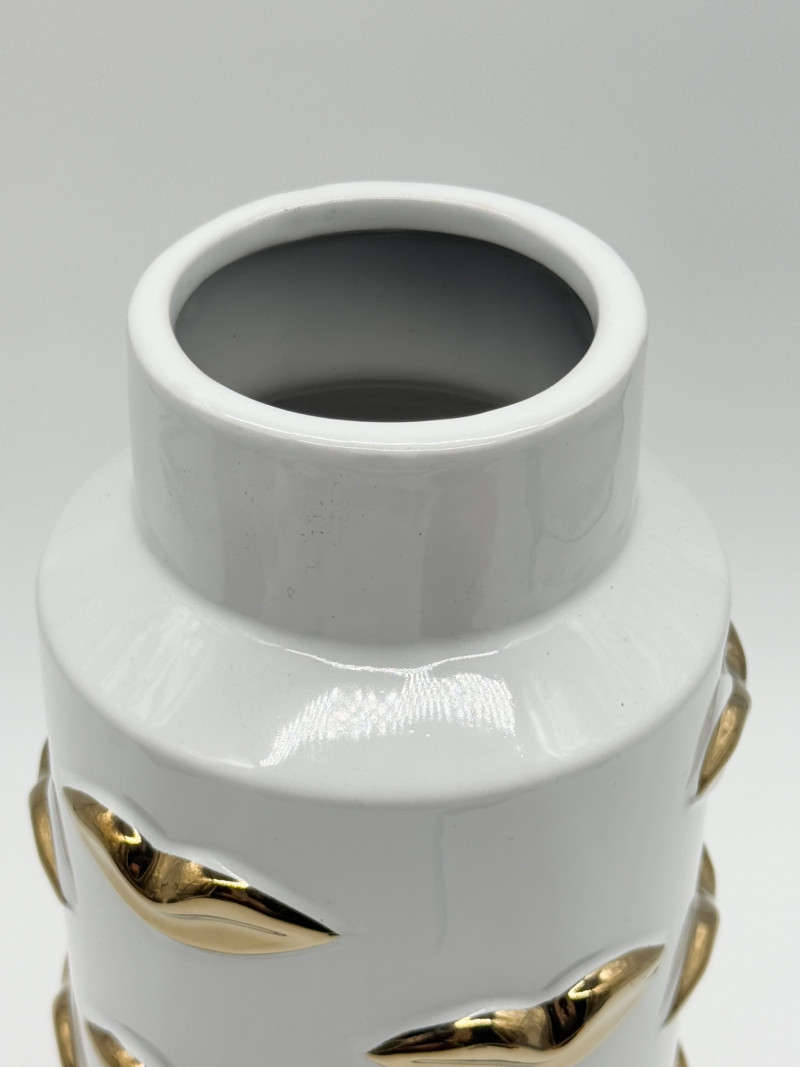 Lot # 60 - White Ceramic Vase w/ Gold-Tone Lips