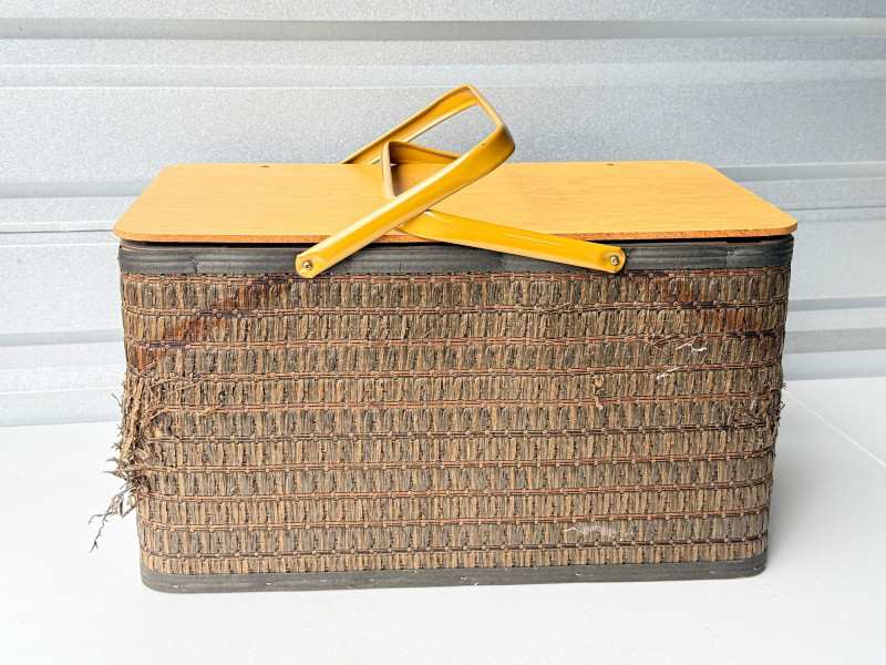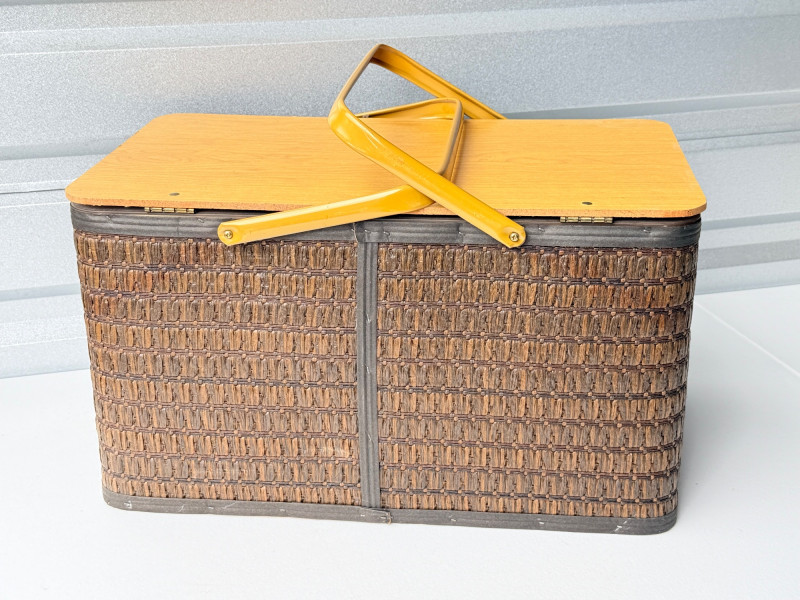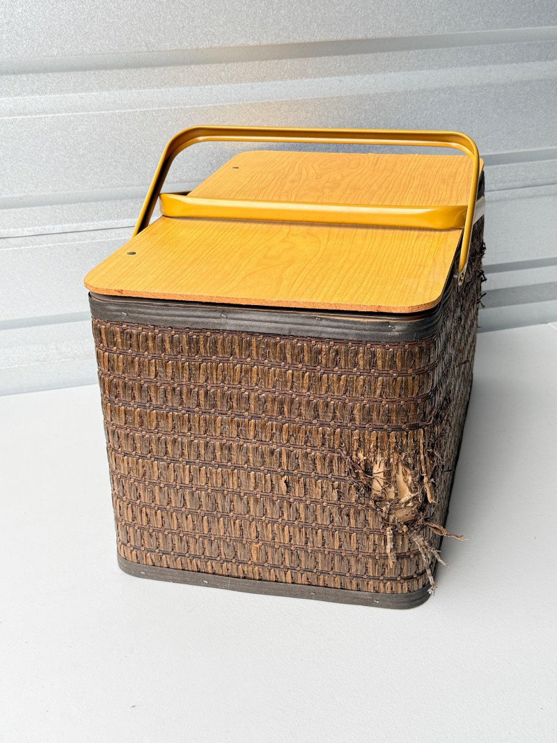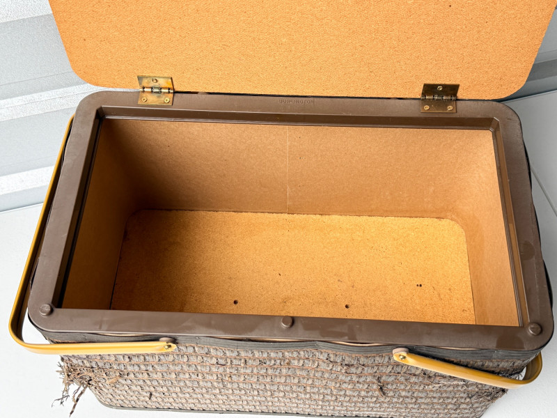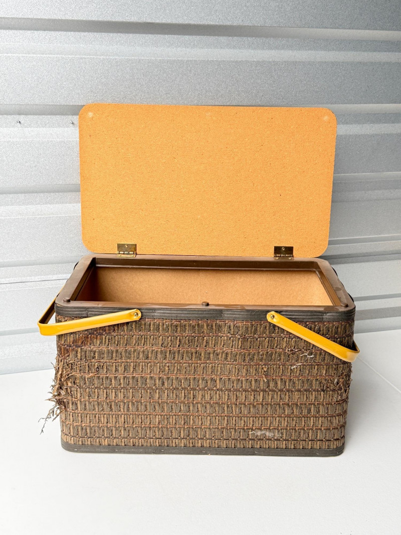 Vintage Hawkeye Burlington Woven Picnic Basket w/ Metal Handles