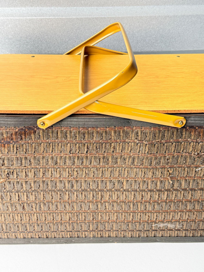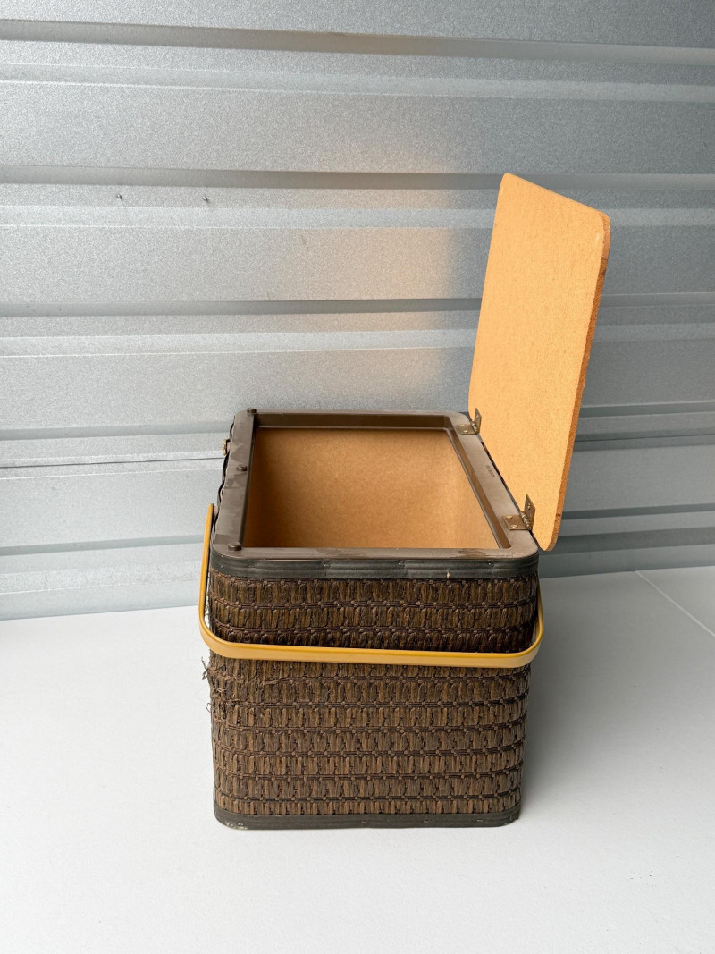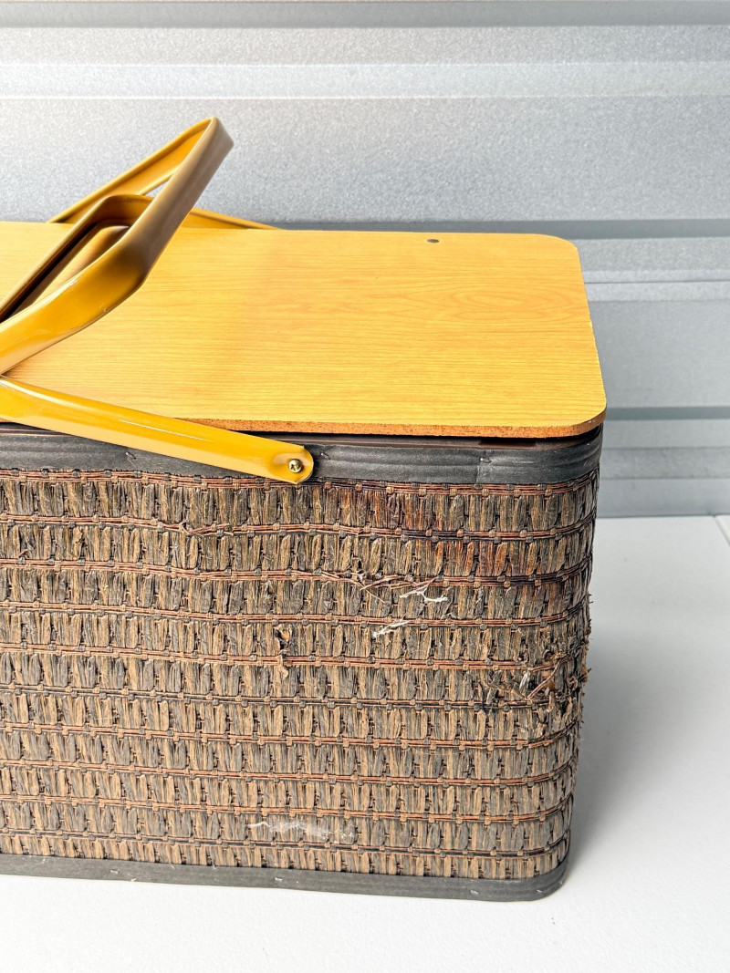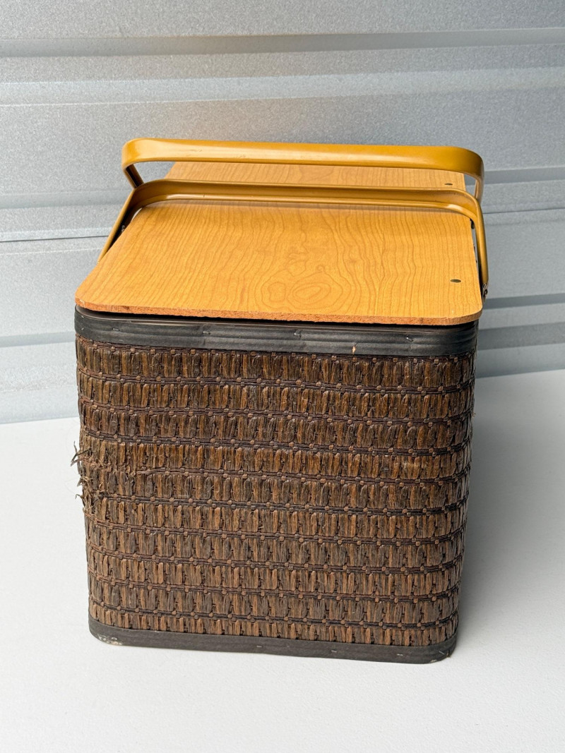 Vintage Hawkeye Burlington Woven Picnic Basket w/ Metal Handles