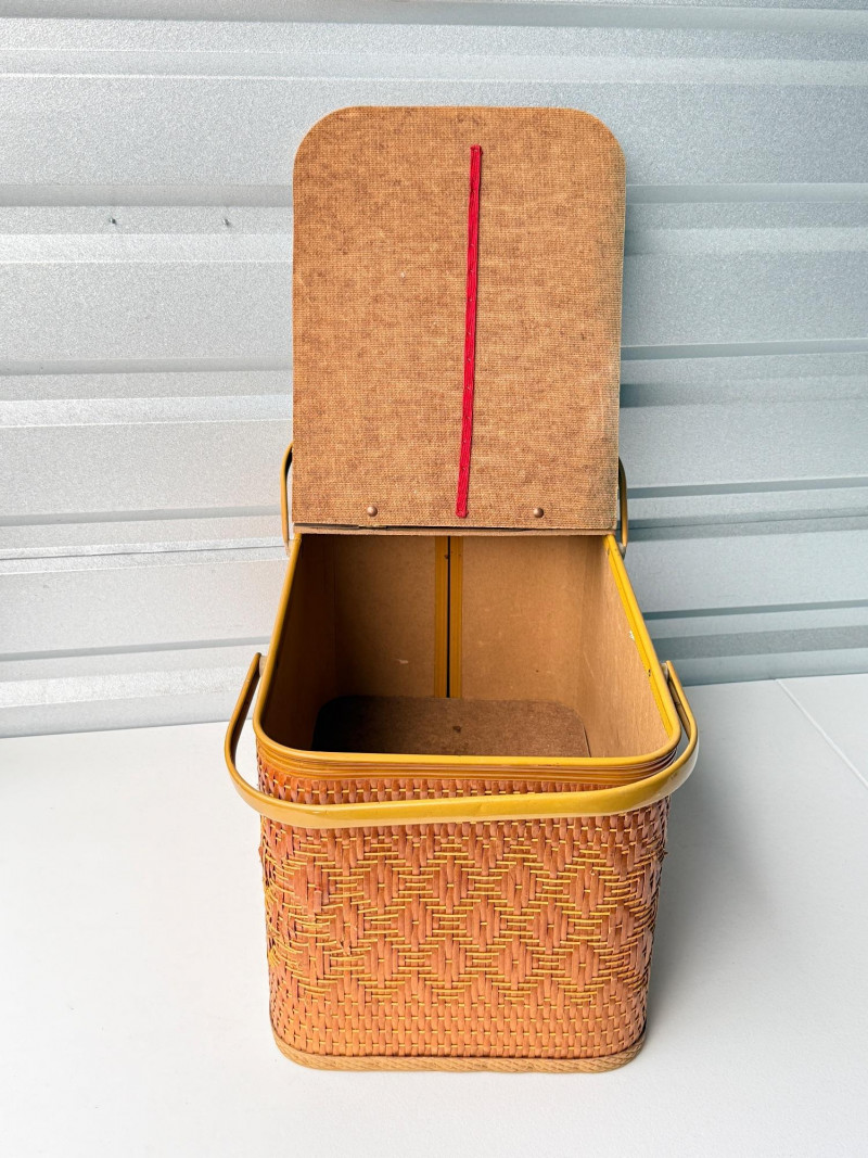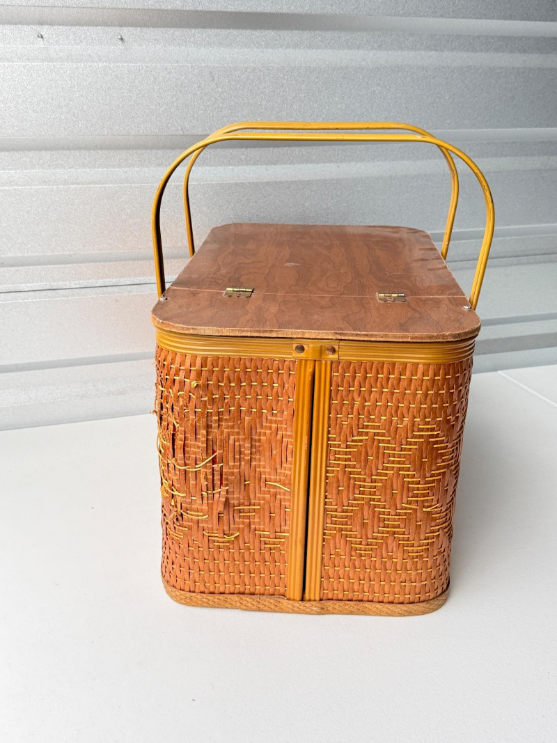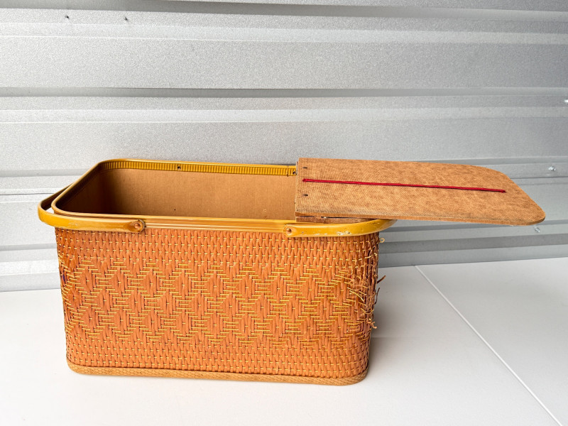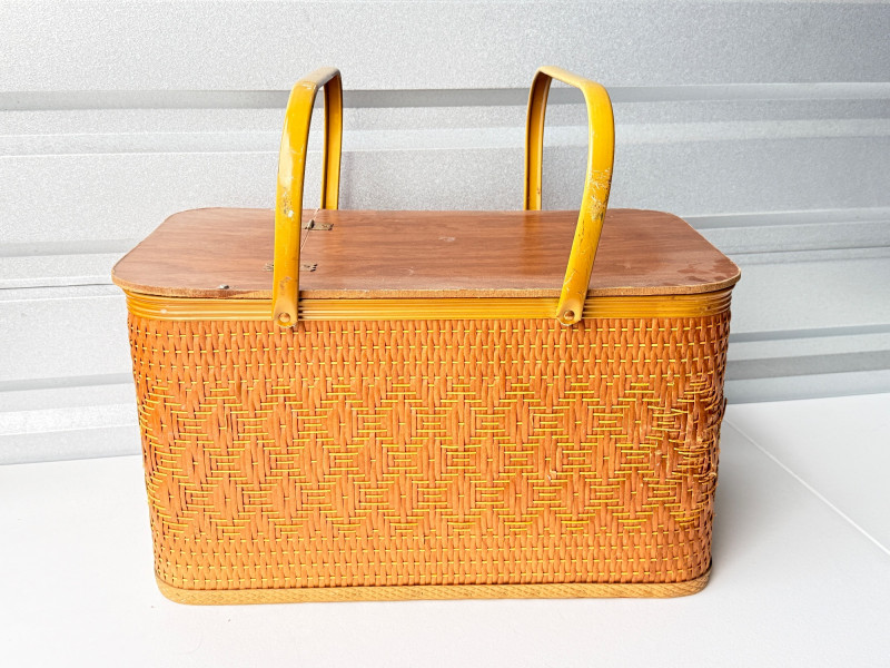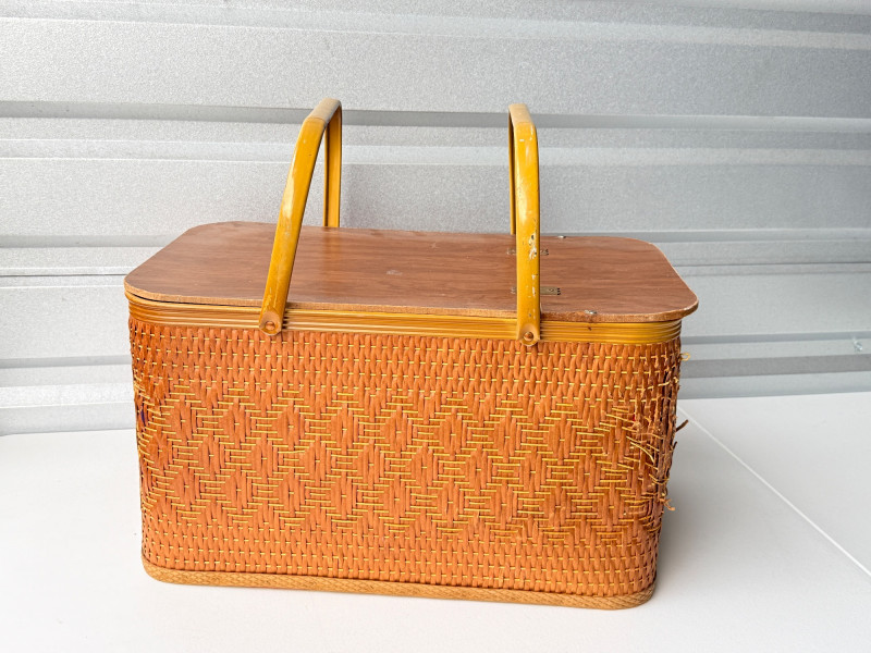 Vintage Redman Woven Picnic Basket w/ Metal Handles