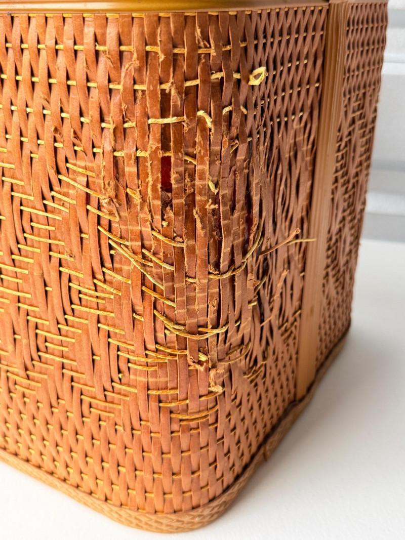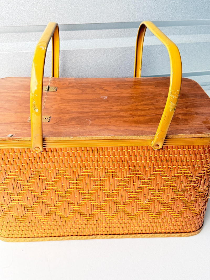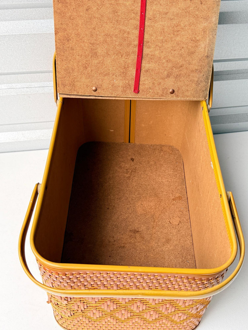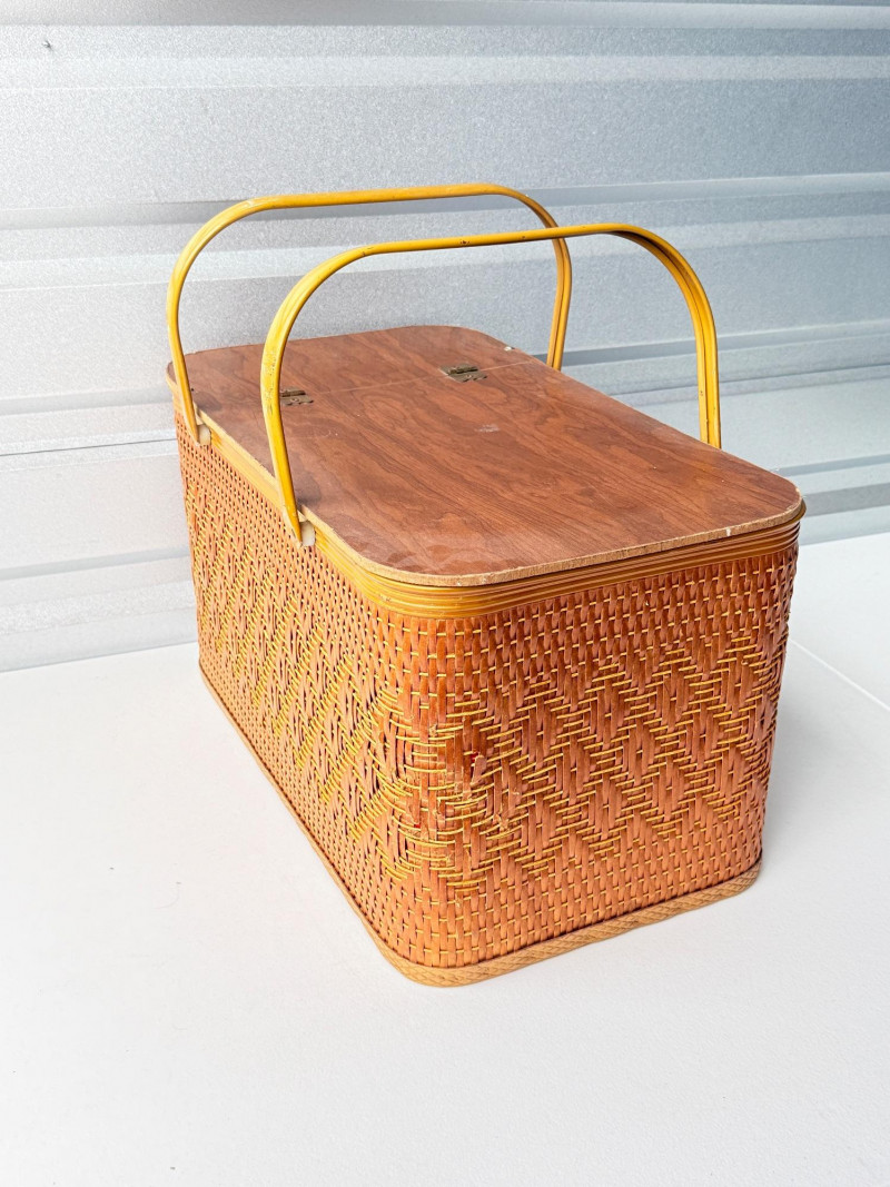 Vintage Redman Woven Picnic Basket w/ Metal Handles