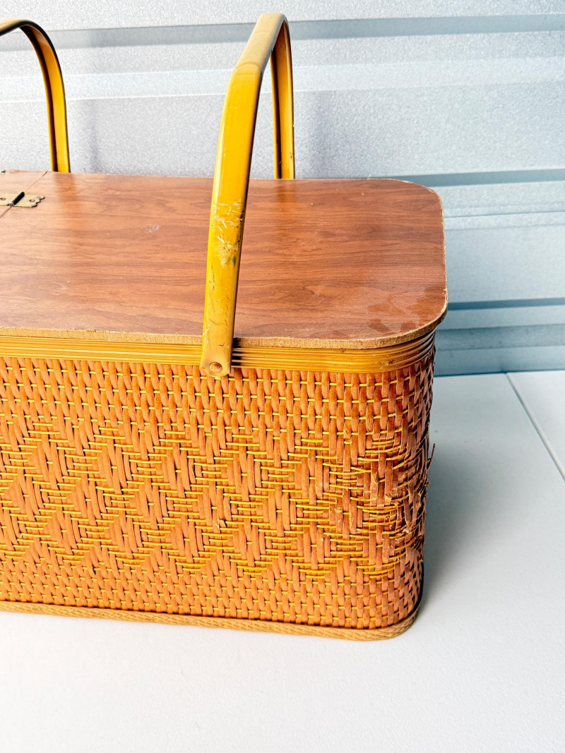 Lot # 41 - Vintage Redman Woven Picnic Basket w/ Metal Handles