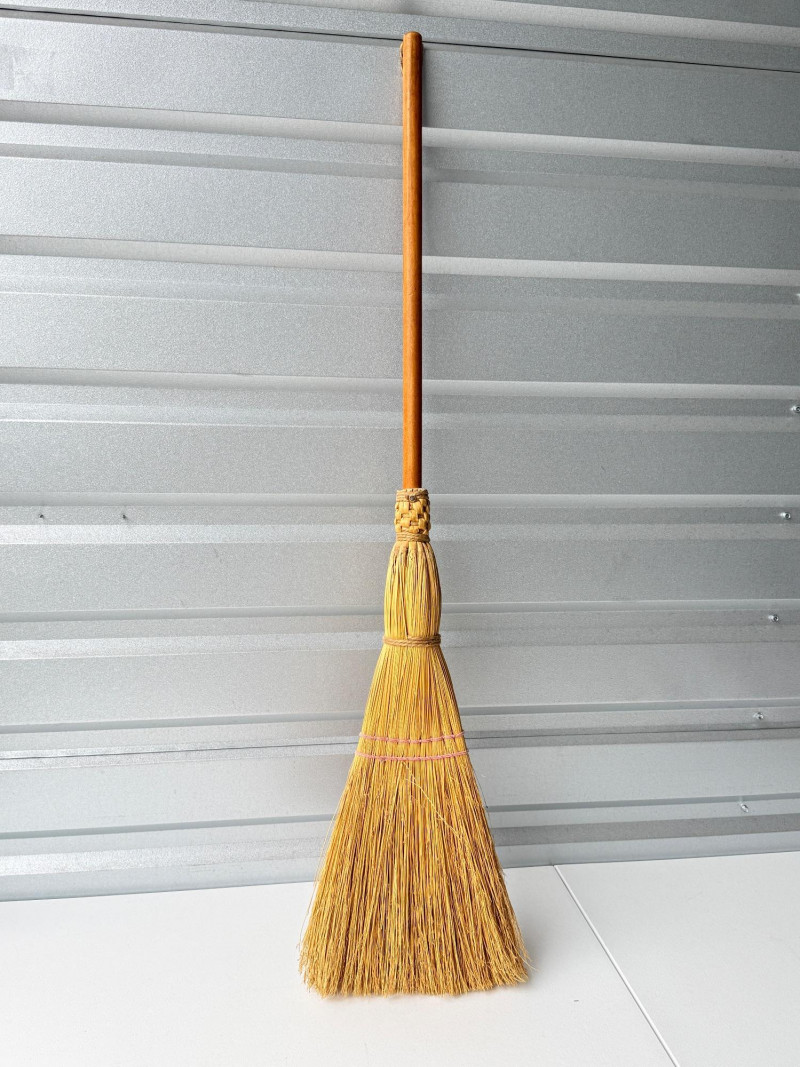 Natural 45" Straw Hearth Broom w/ Wooden Handle
