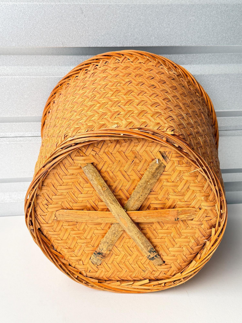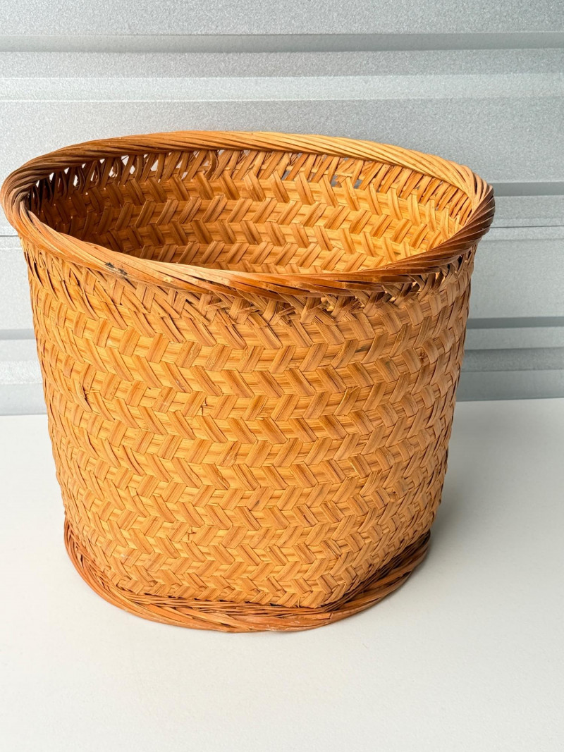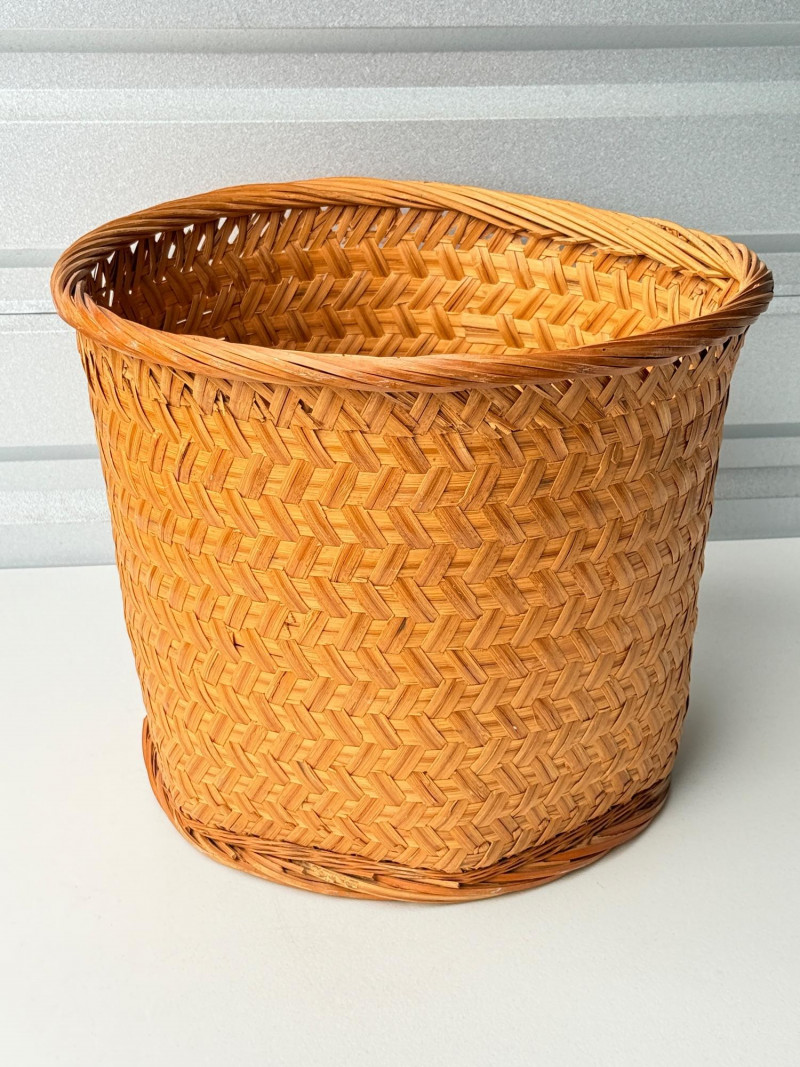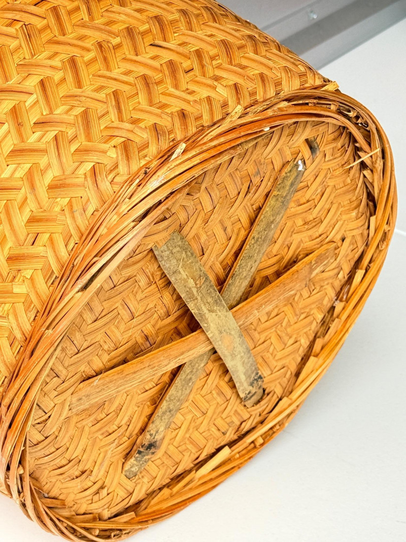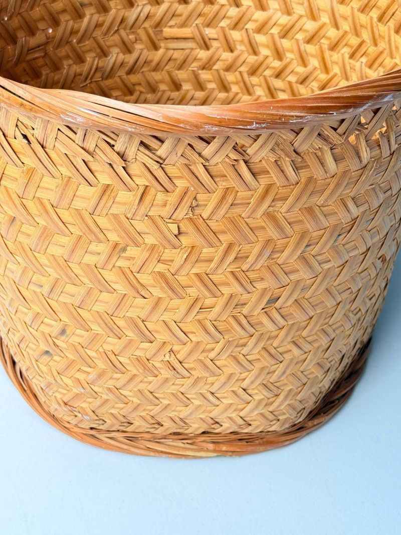 Vintage Chinese Gatherer's Herringbone Woven Basket